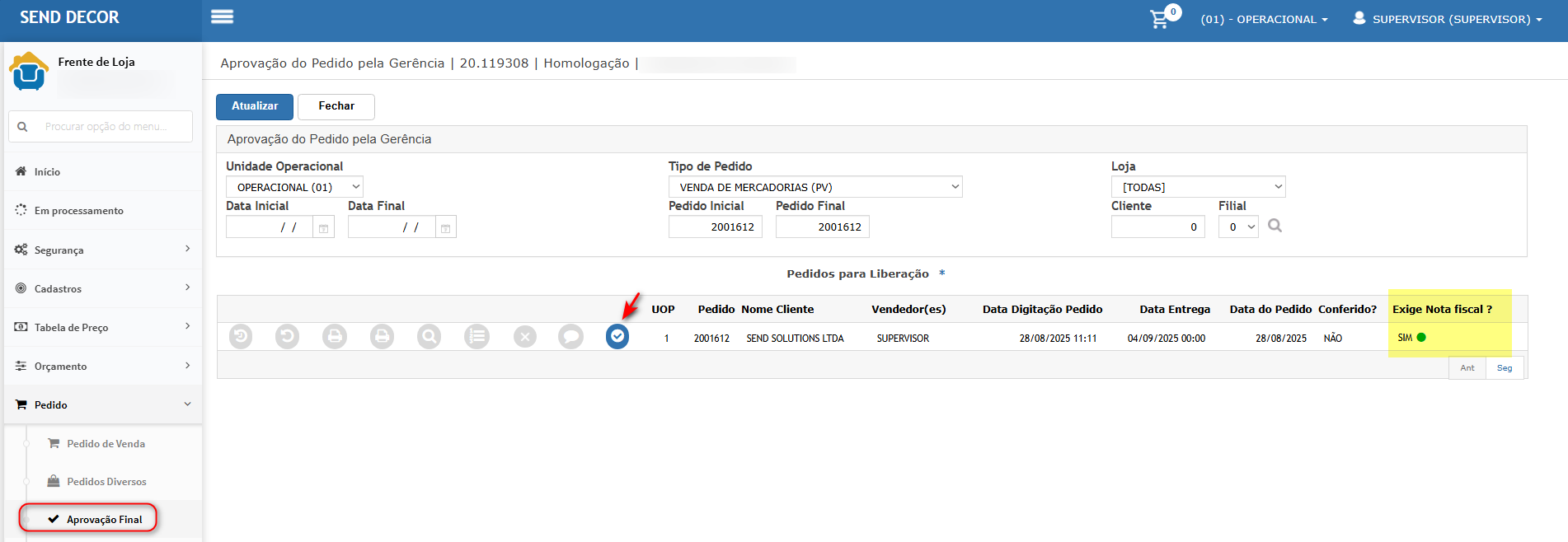 OS 80360 - MELHORIA - SIS/WEB - SENDDECOR - NECESSIDADE DE GERAR NOTA FISCAL