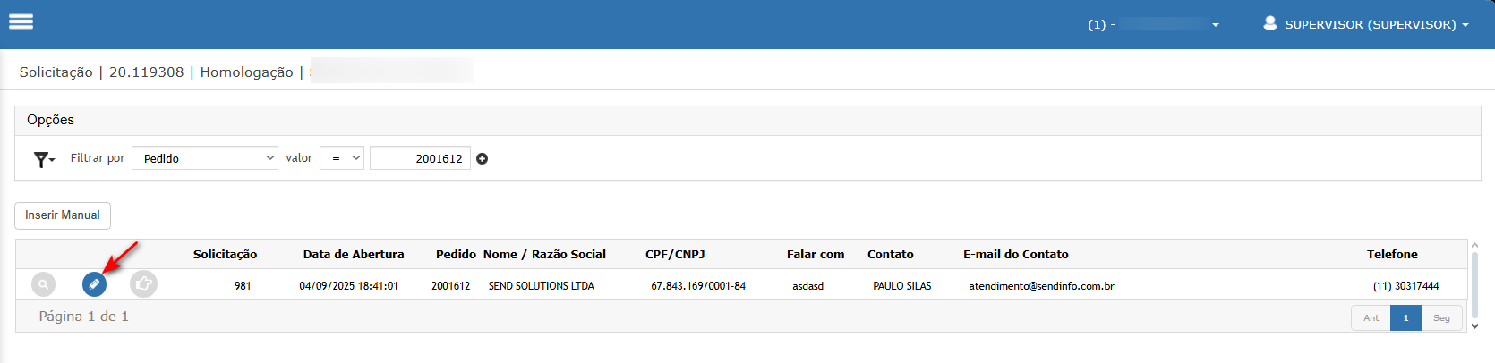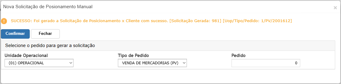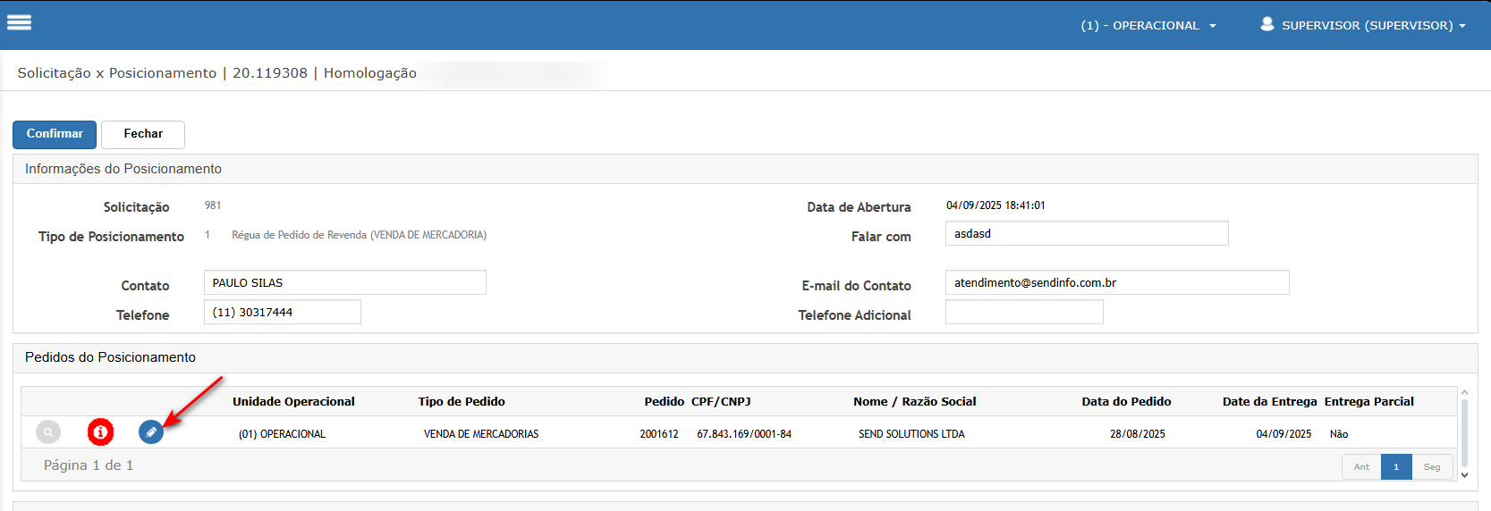 Neste cenário iremos gerar uma nova solicitação de posicionamento e verificar que é possível editar o campo informativo.