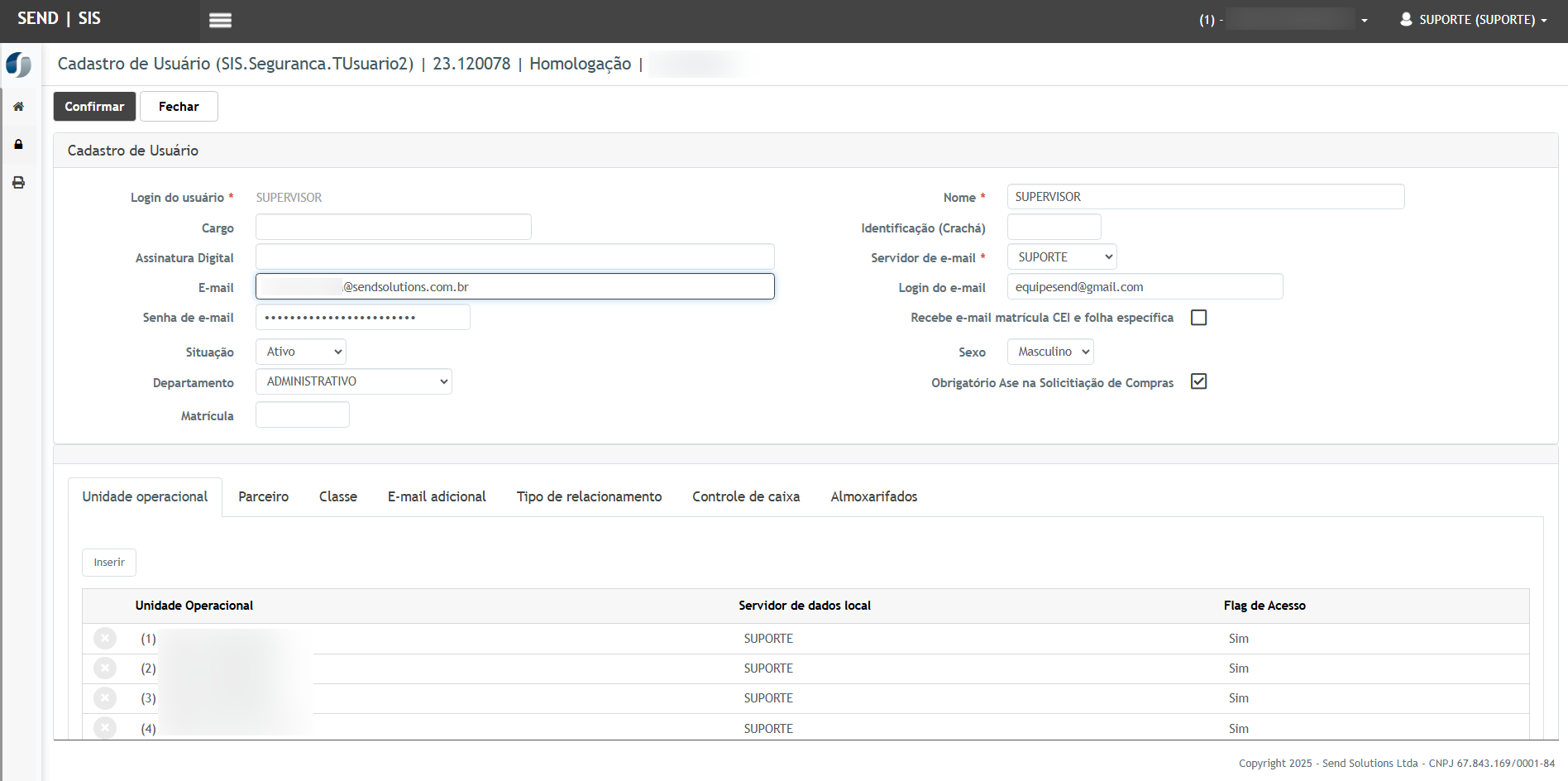 - Caminho: Módulo Segurança >> Segurança>> Servidor de E-mail