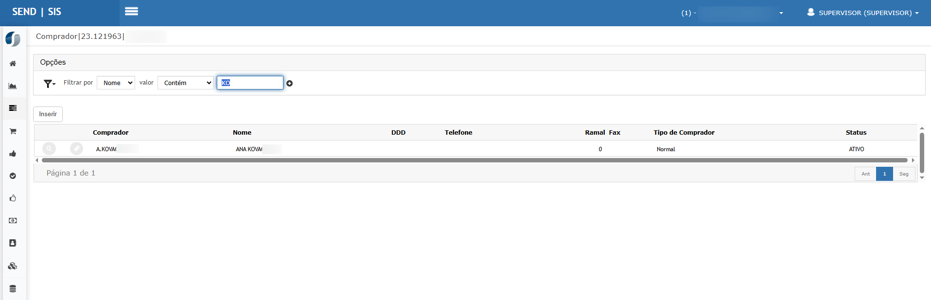 - Acesse o cadastro de Compradores. Verifique a guia de Centro de Custos.