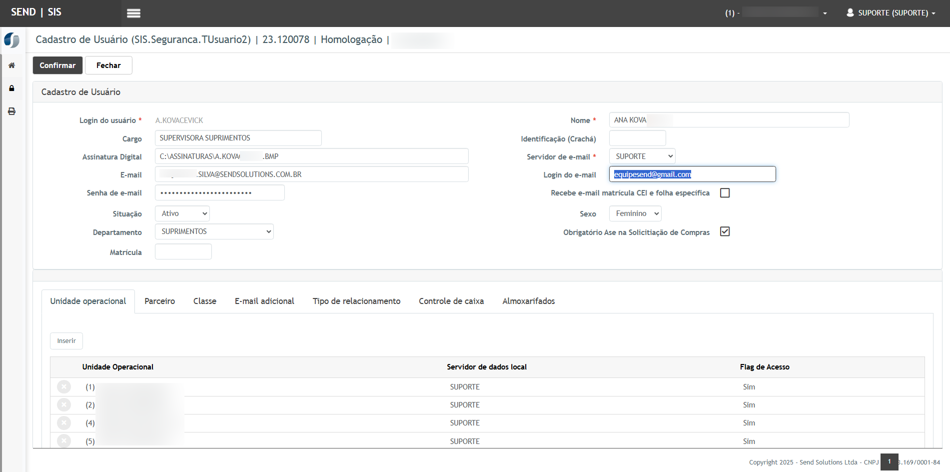 - O usuário Aprovador deve ter o login de e-mail e a senha do mesmo corretamente configurados;