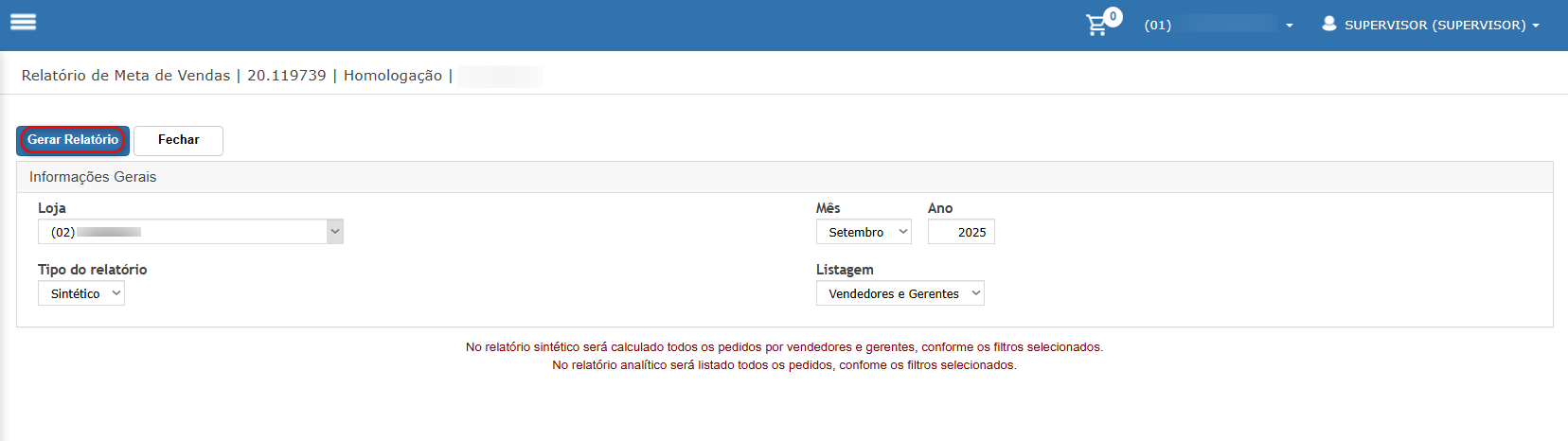 Observação: Para gerar o relatório, os cadastros de metas e períodos devem estar cadastrados: