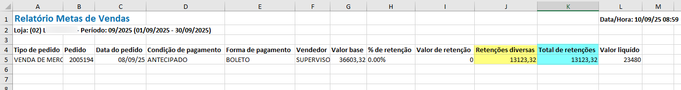 - Esta solicitação tem por objetivo adicionar a coluna de retenções no relatório de metas.