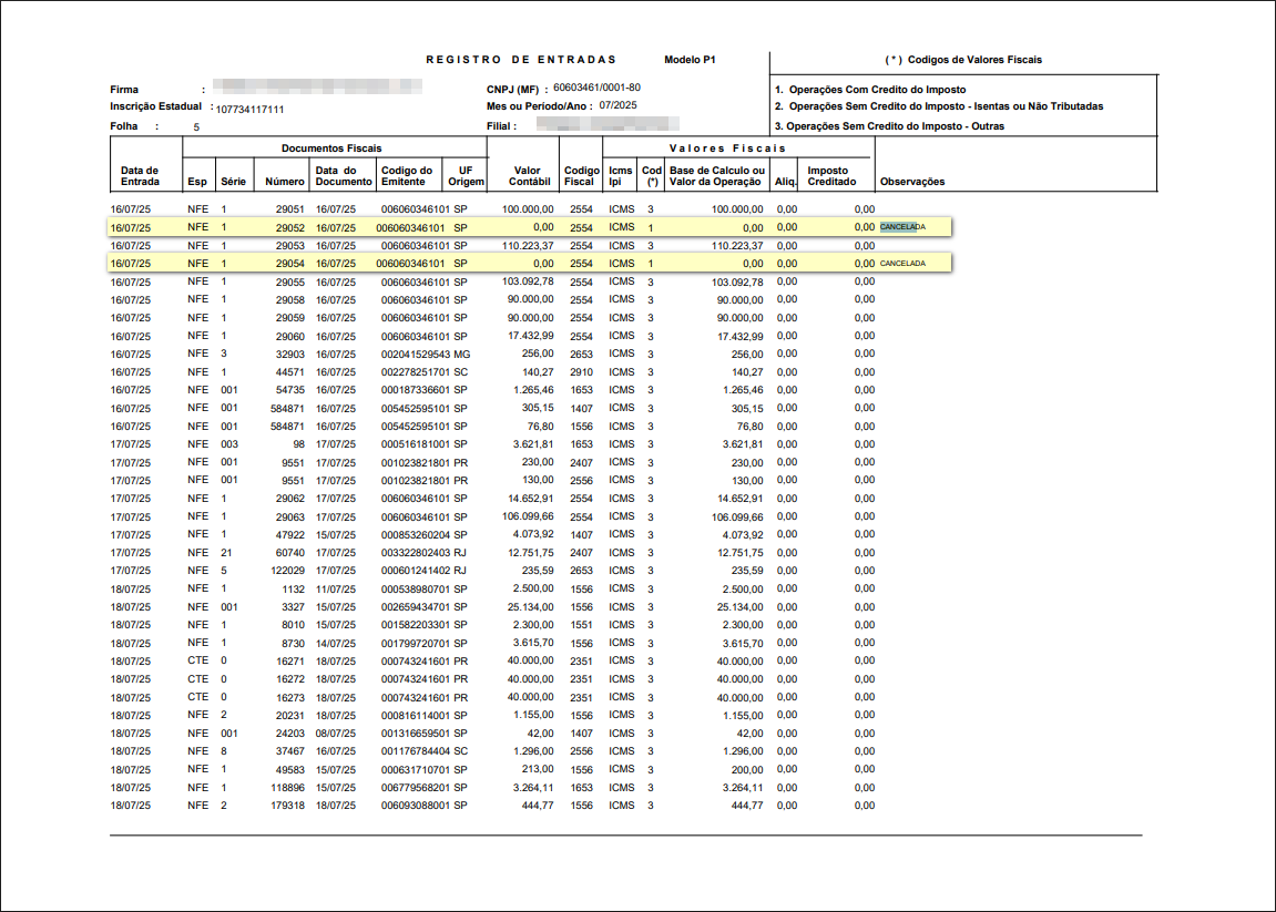 OS 80565 - MELHORIA - FISCAL - RELATÓRIO REGISTRO DE ENTRADAS / SAIDAS - EXIBIR NOTAS CANCELADAS EMISSÃO PROPRIA