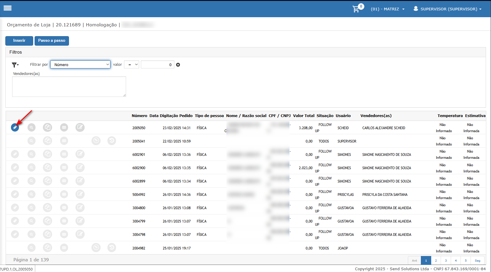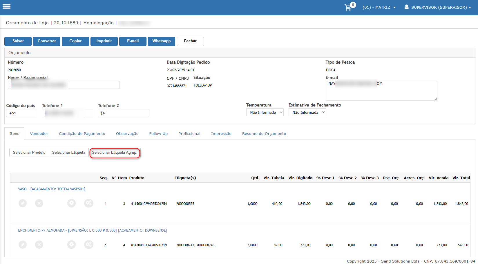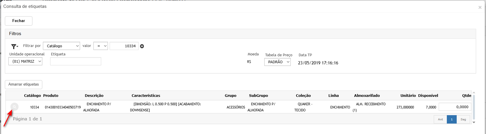 Neste cenário iremos acessar a consulta de etiquetas amarradas referente ao orçamento.