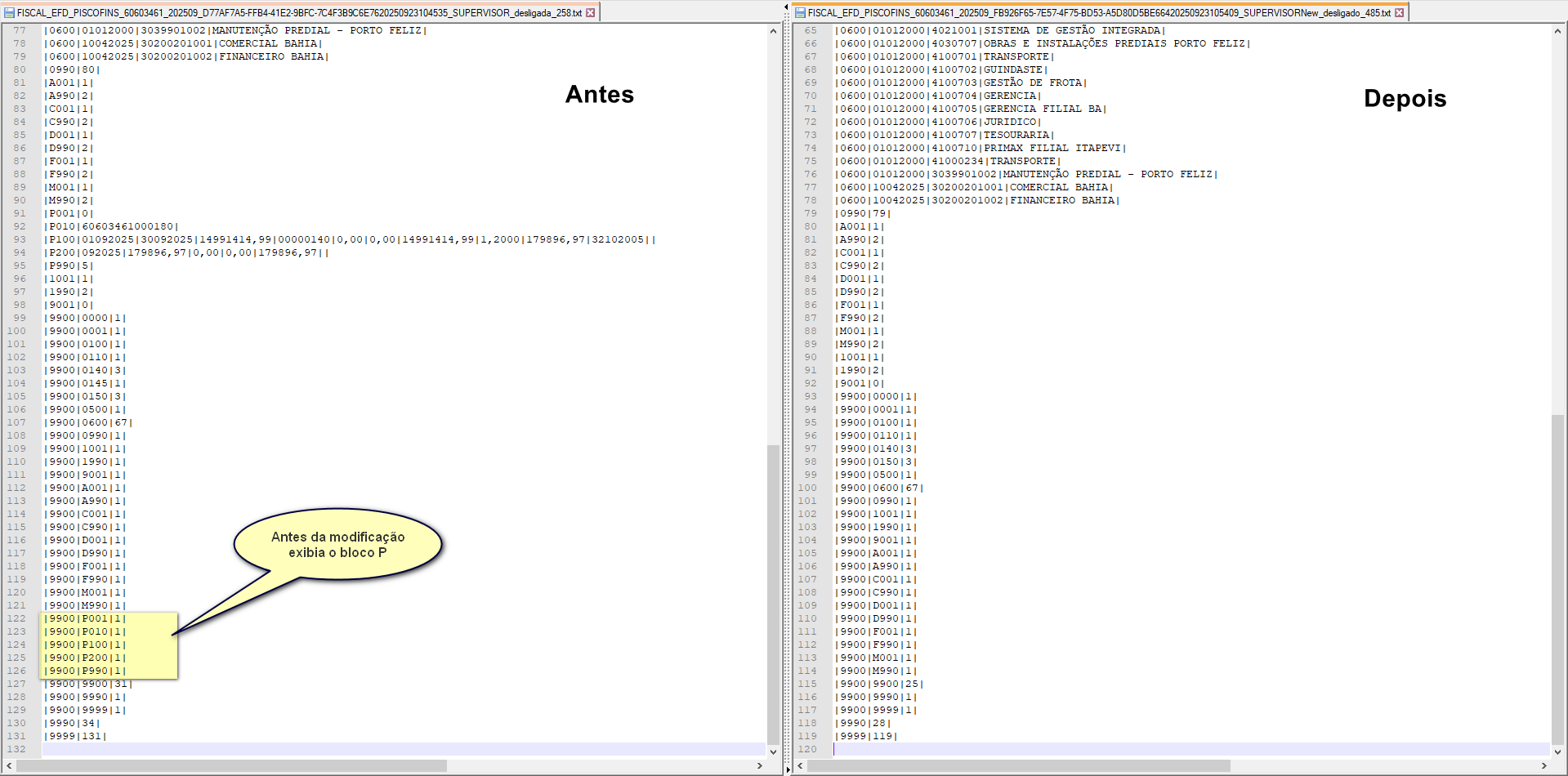 - A interface “Geração de Arquivo SPED Contribuições” não gere o Bloco P, eliminando o erro de estrutura reportado no registro 0145.