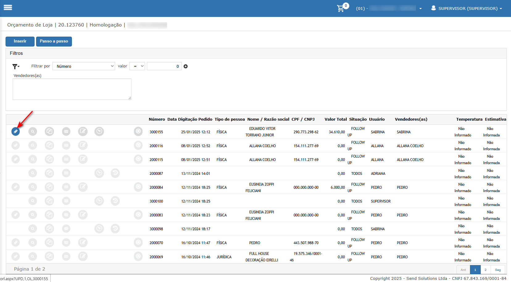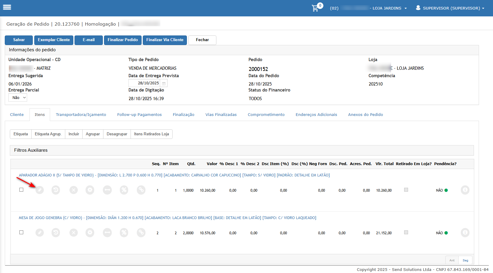 Neste cenário iremos editar ou inserir um novo pedido e validar as novas opções de referência no orçamento.