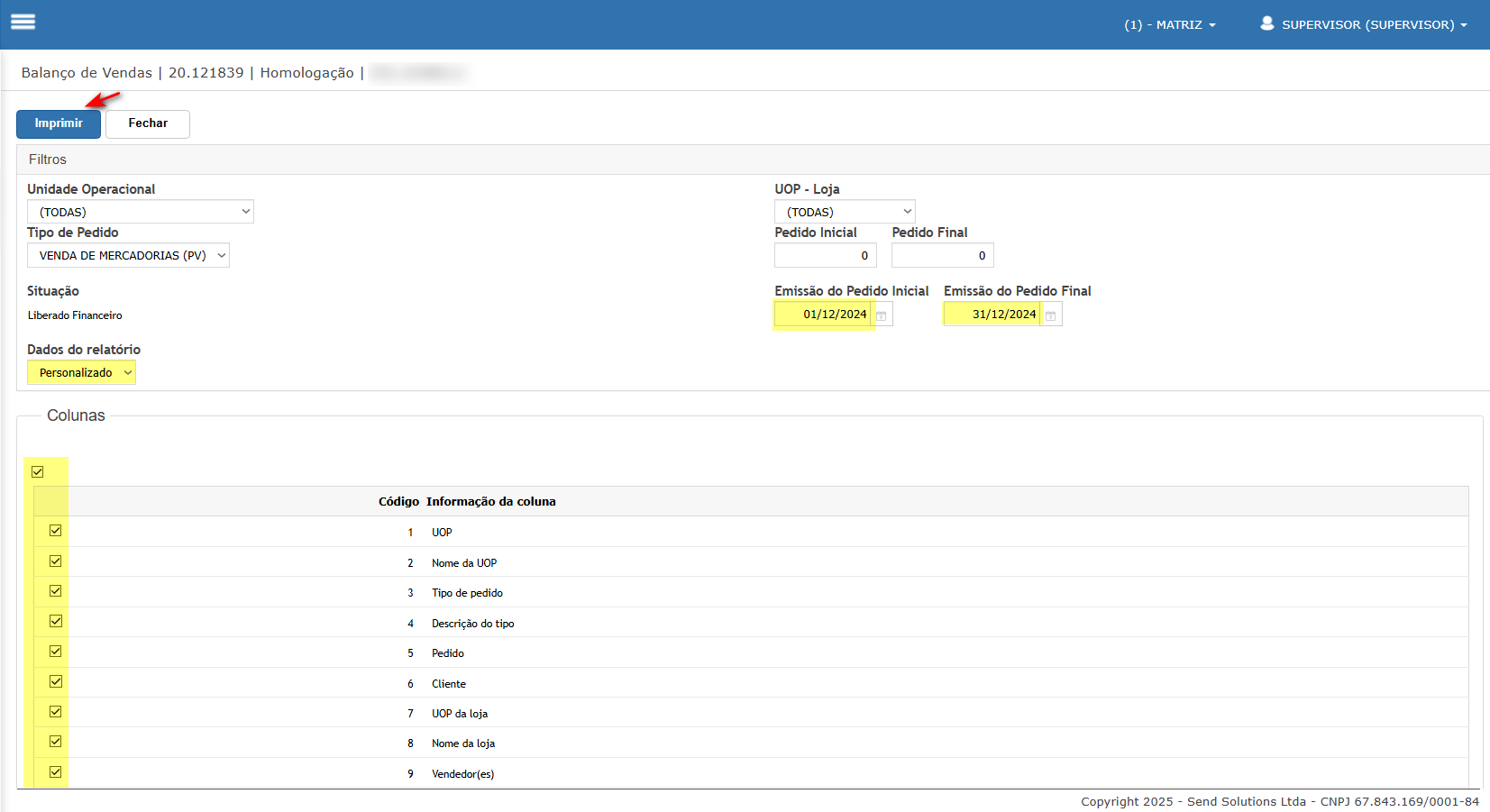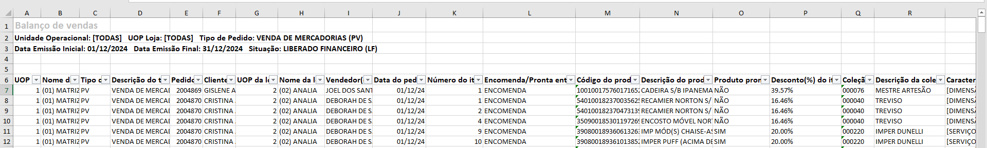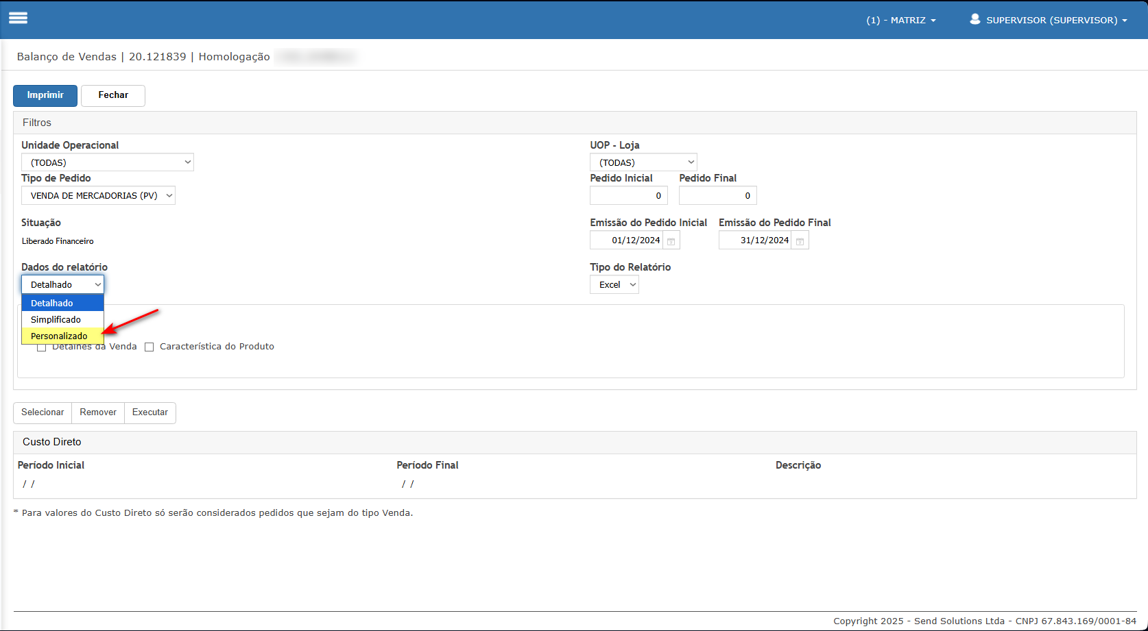 Neste cenário iremos acessar a tela de balanço de vendas e validar o novo tipo de detalhamento.