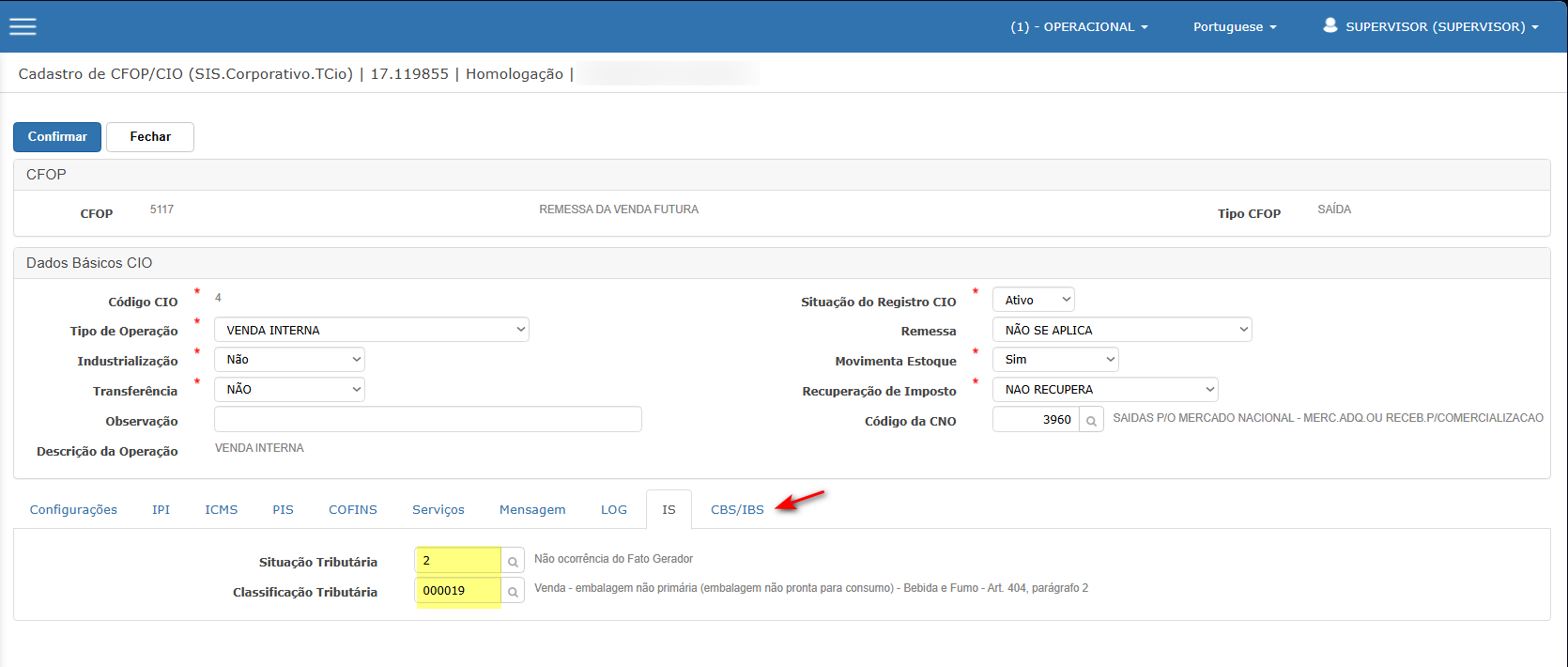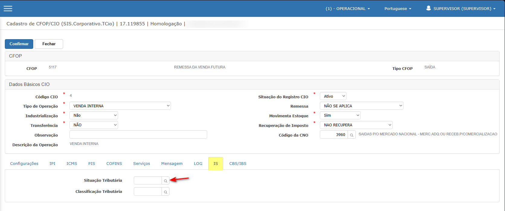Neste cenário iremos verificar novas tributações IBS, CBS e IS, depois vincular na CFOP/CIO. Atualmente o imposto IS (Imposto seletivo) não possui regras detalhadas pela Sefaz, mas se faz obrigatório a configuração da para geração e calculo da nota fiscal.