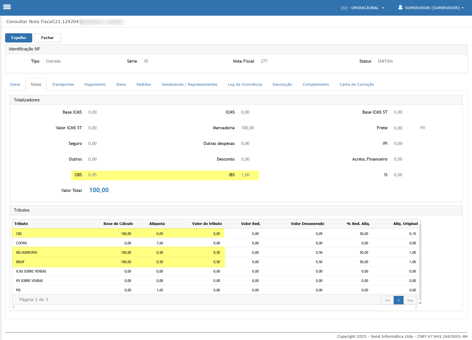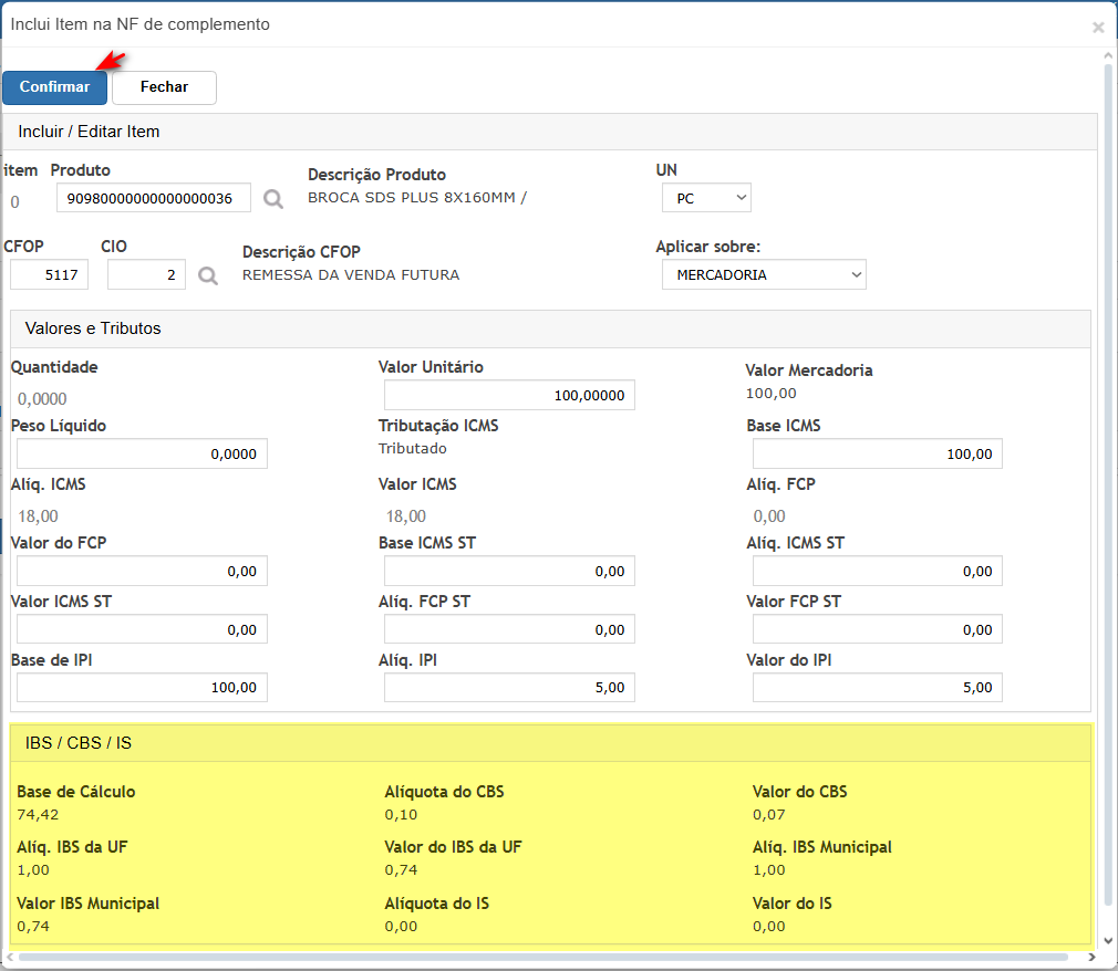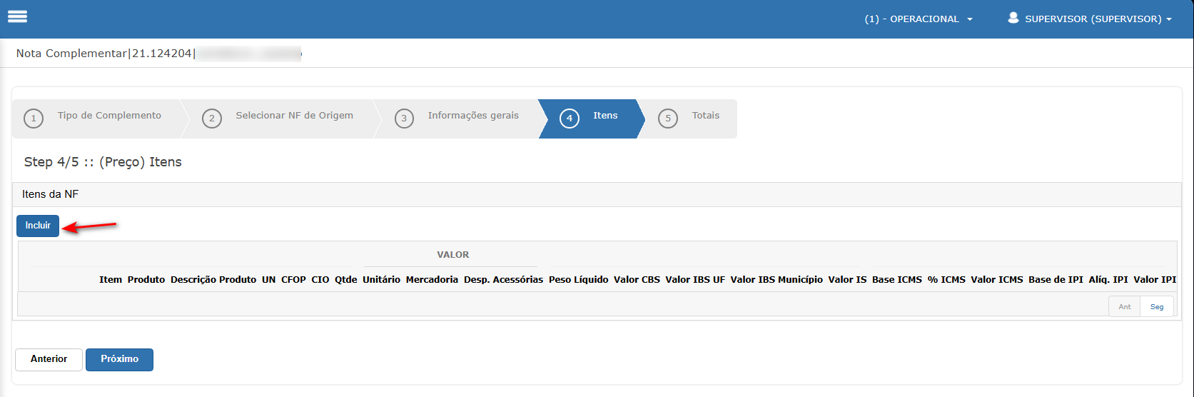 Neste cenário iremos acessar a nota de complemento de preço e validar os novos tributos da reforma.