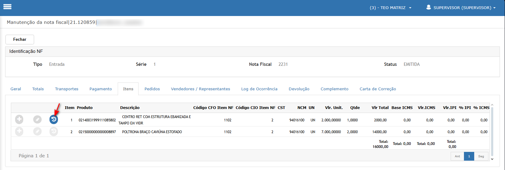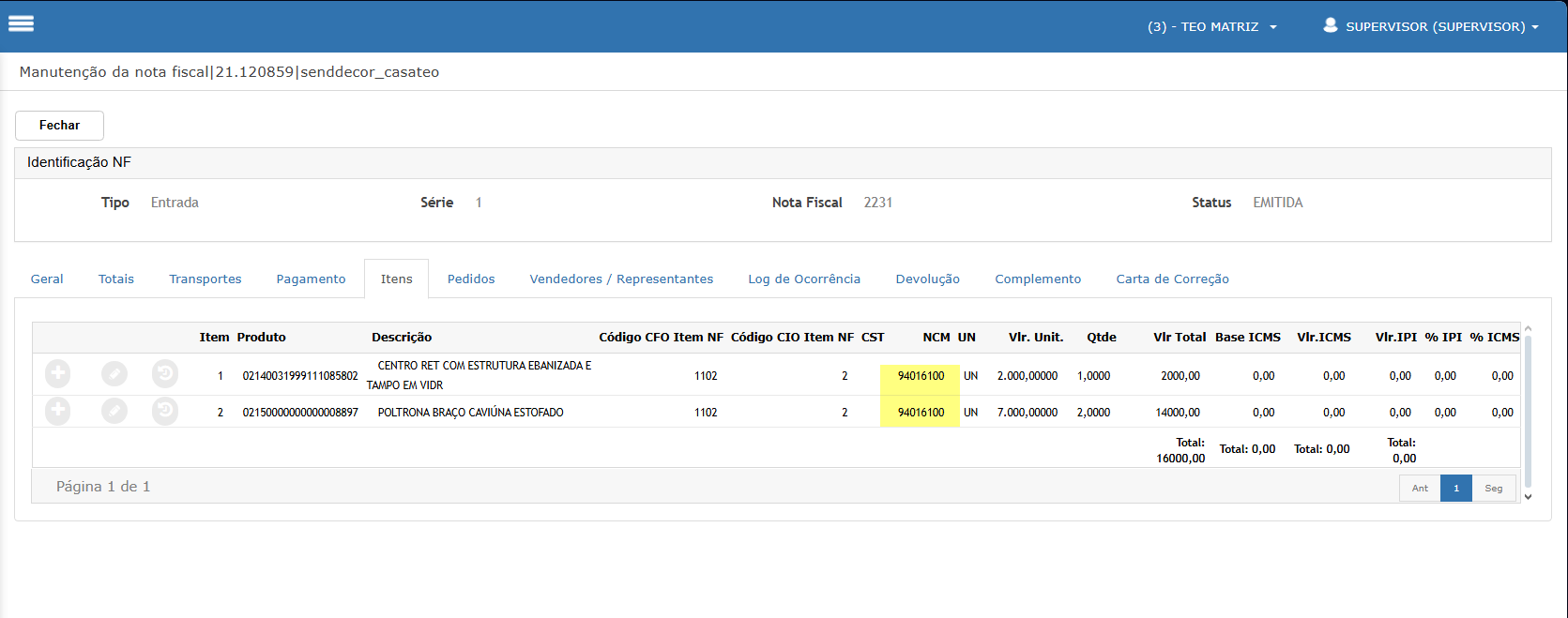 Neste cenário iremos realizar manutenção de NCM vinculados aos itens de notas geradas anteriores a versão.