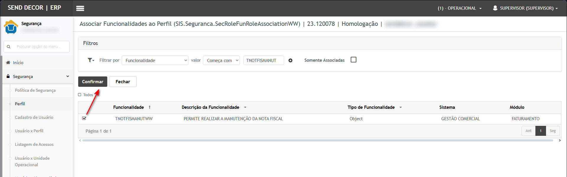 - Necessário o ambiente estar atualizado com a versão do módulo FaturamentoDecor de número 121444 ou superior;