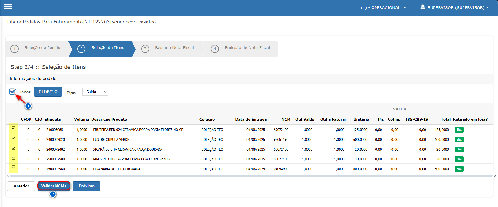 Neste cenário iremos acessar o faturamento de pedidos e validar os itens vs o NCM.