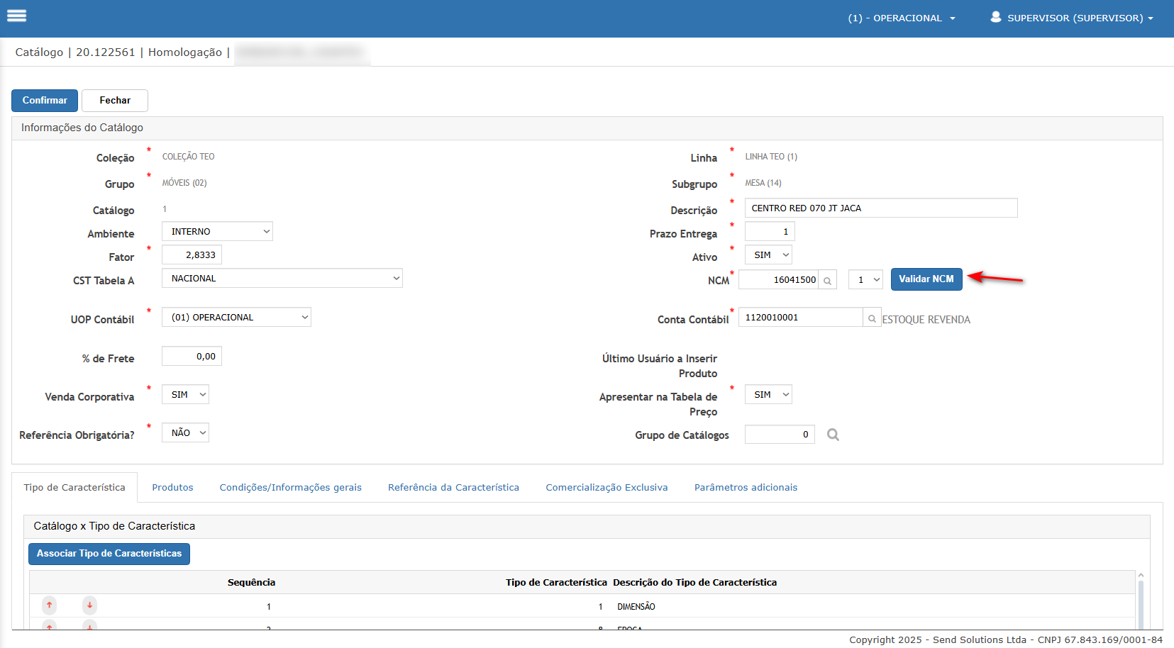 Neste cenário iremos acessar o cadastro de catálogo e verificar o NCM cadastrado;