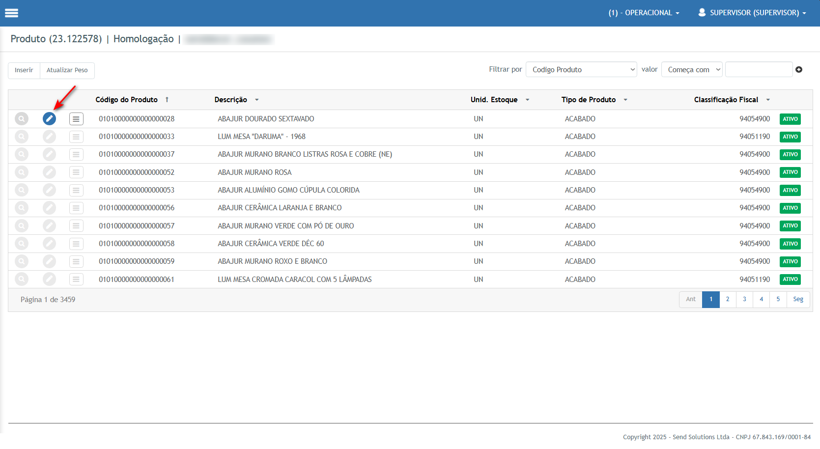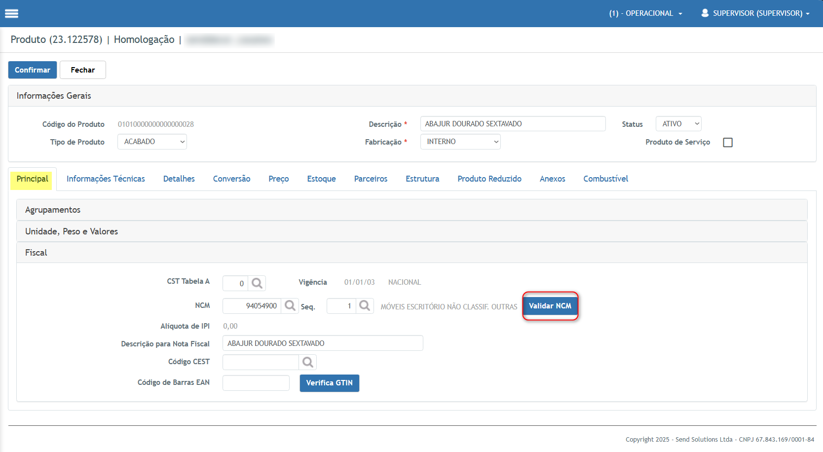 Neste cenário iremos acessar o cadastro de algum produto e acessar a consulta de NCM pela API.