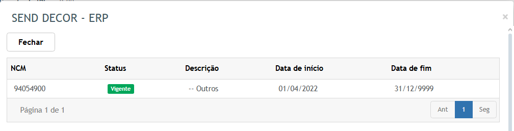 - Esta solicitação tem por objetivo adicionar o botão “Validar NCM” nos módulos Faturamento Decor (emissão de NF), Desenvolvimento de Produtos (cadastro de catálogo) e Corporativo (cadastro de produtos), que retorna a situação do NCM conforme item na tabela oficial vigente.