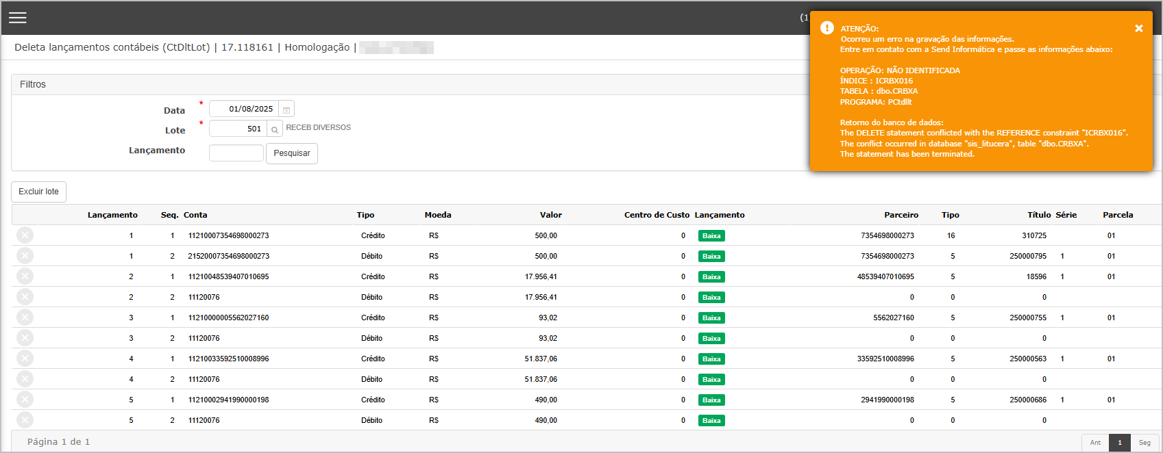 - A correção visa ajustar o cancelamento de lançamento, permitindo que o cancelamento ocorra sem erros.