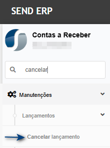 Acessar o módulo Contas a receber → Manutenção → Lançamento →Cancelar lançamento