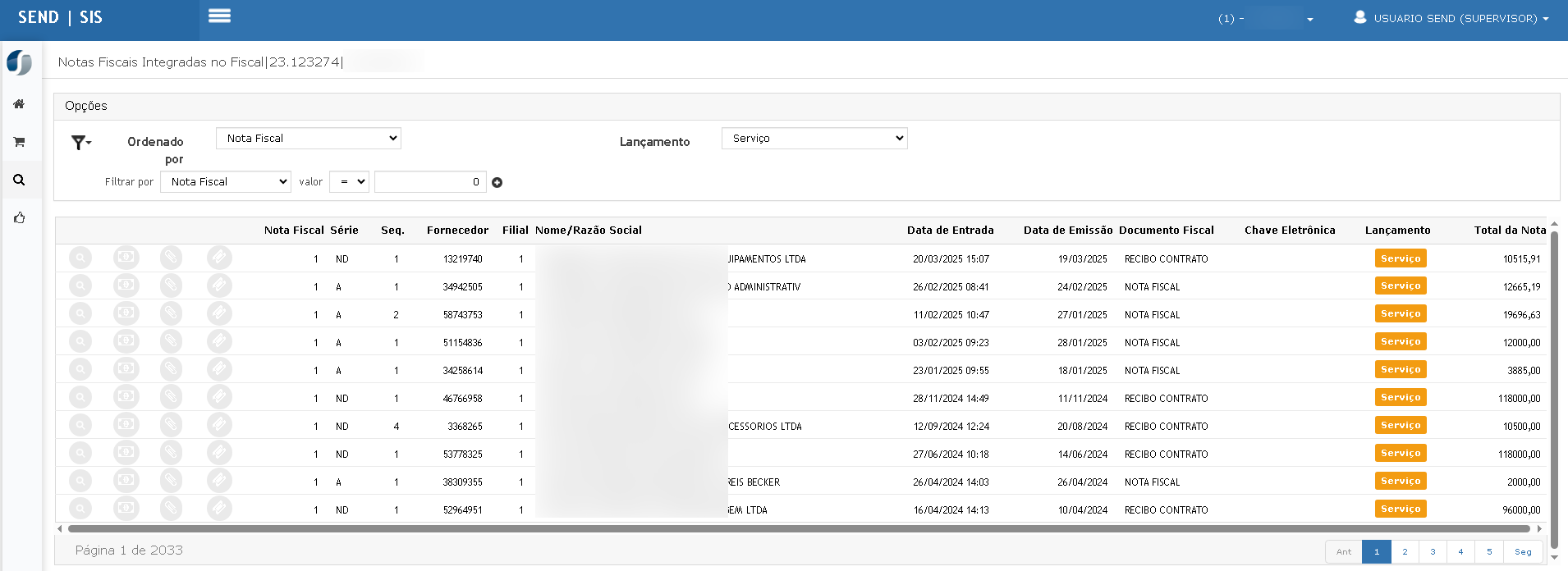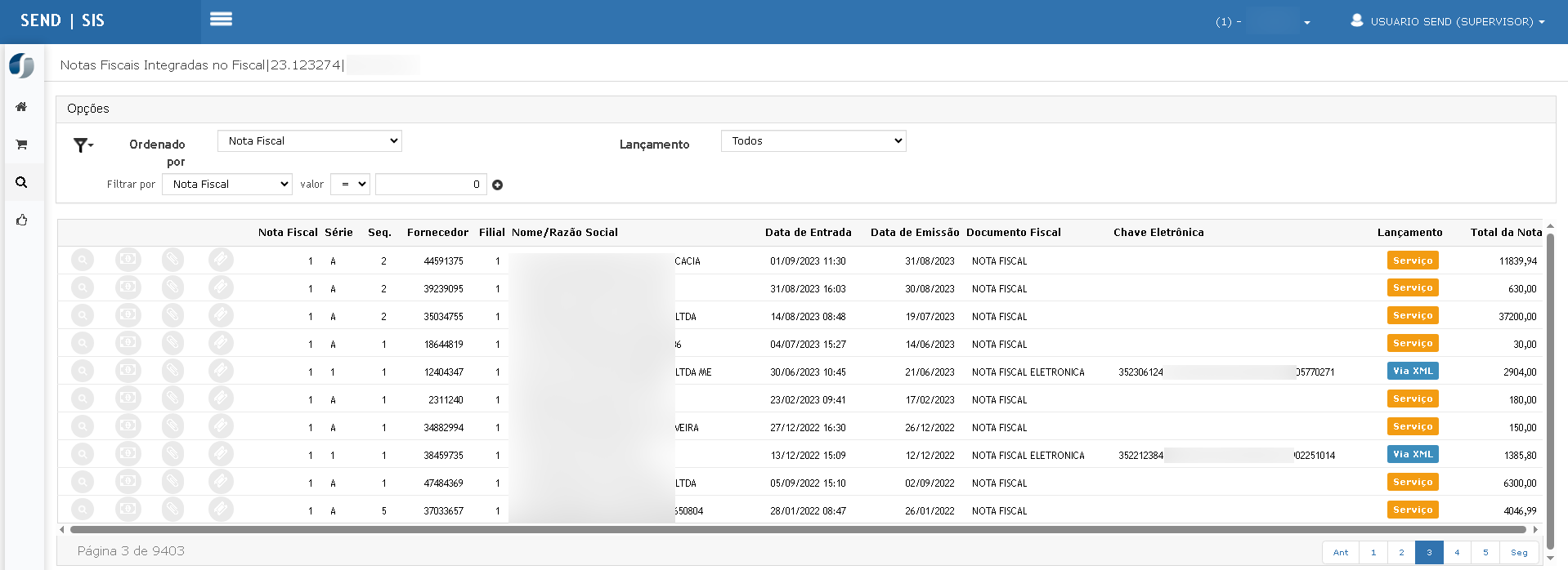 Alterar a ordenação para Data de Entrada e depois para Nota Fiscal.