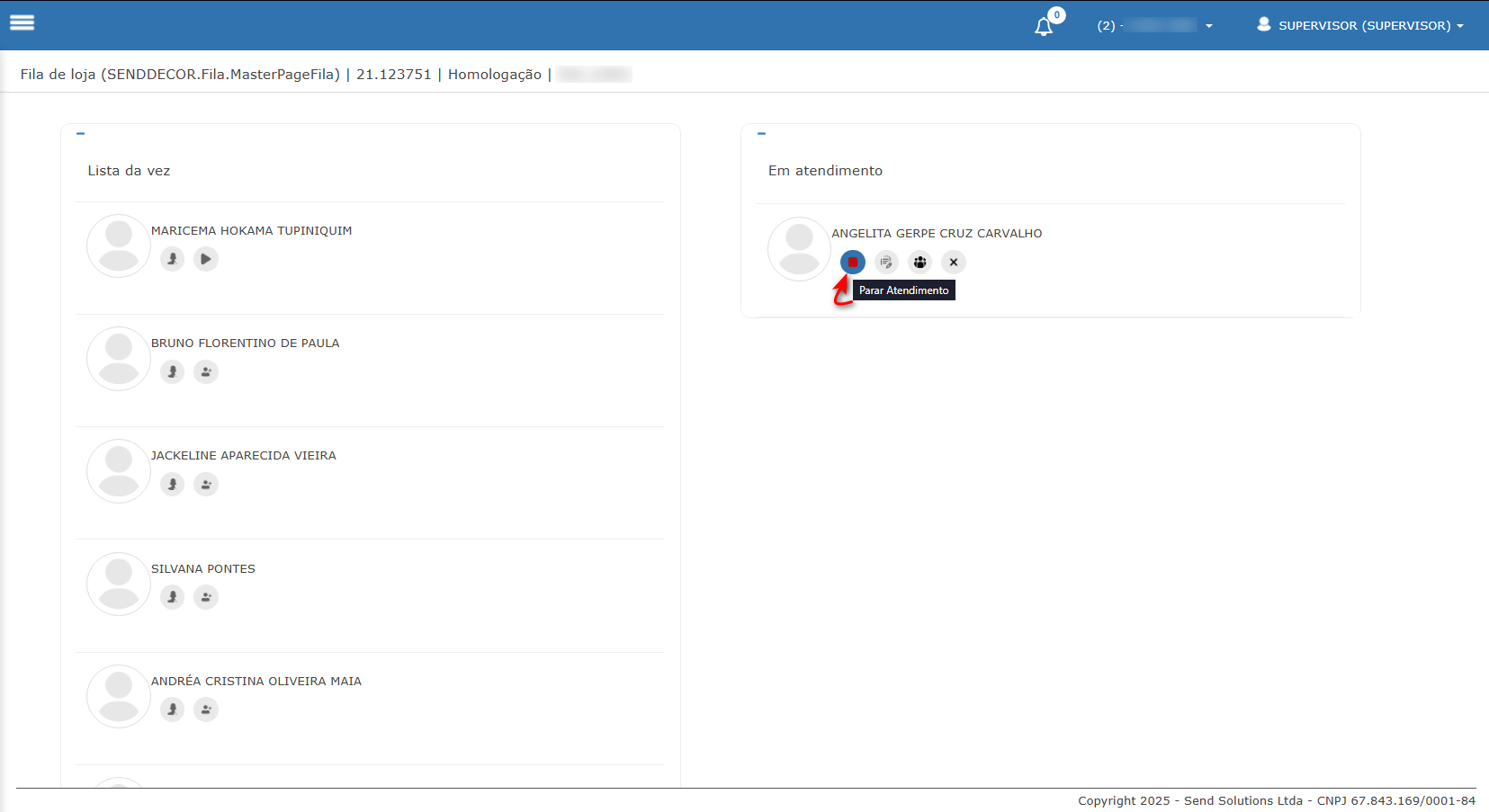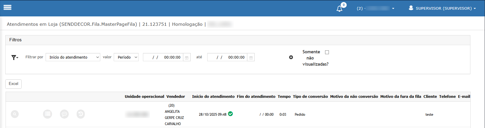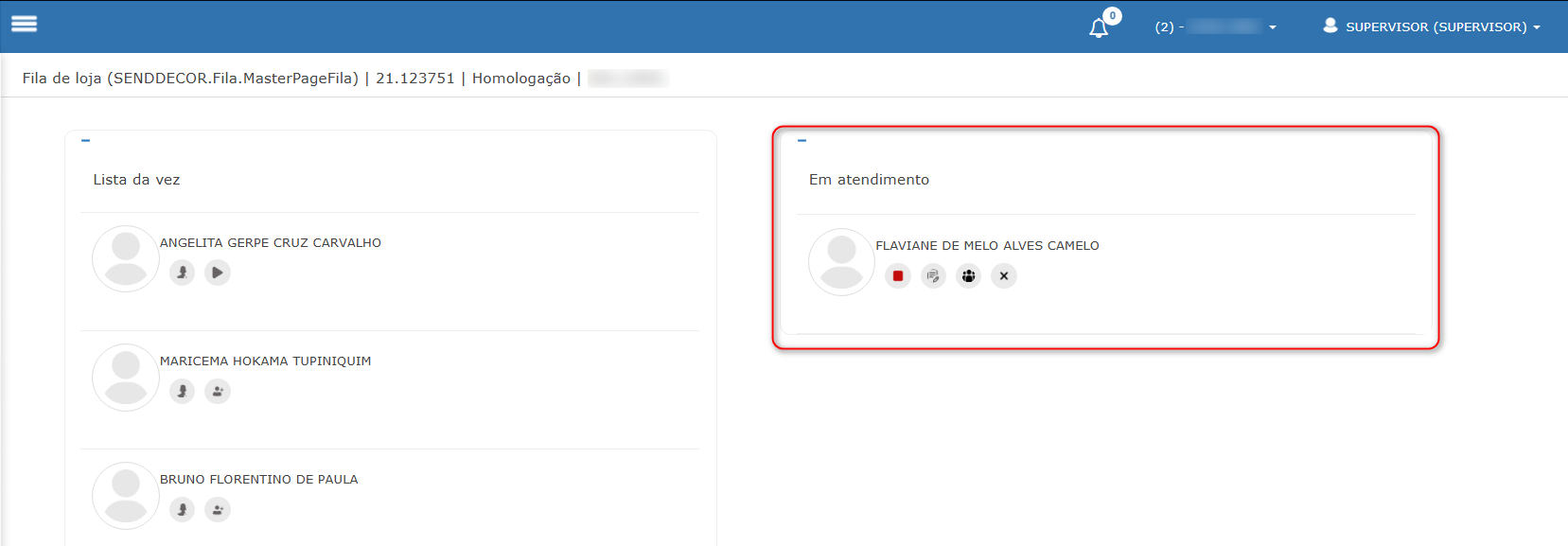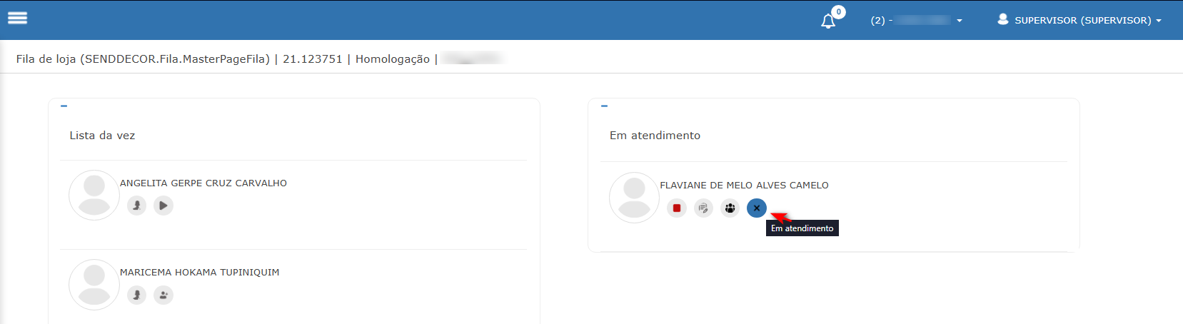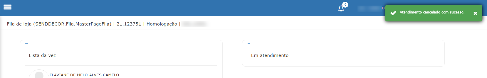 - Para fins de teste iremos iniciar um atendimento e depois cancelar o atendimento, assim validamos que não irá contabilizar na exibição;