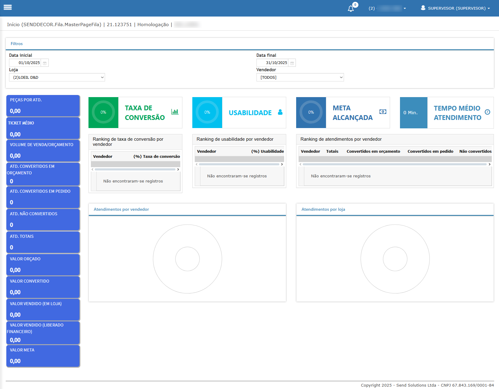 - Acessar a página de início, note que não terá nenhum atendimento;