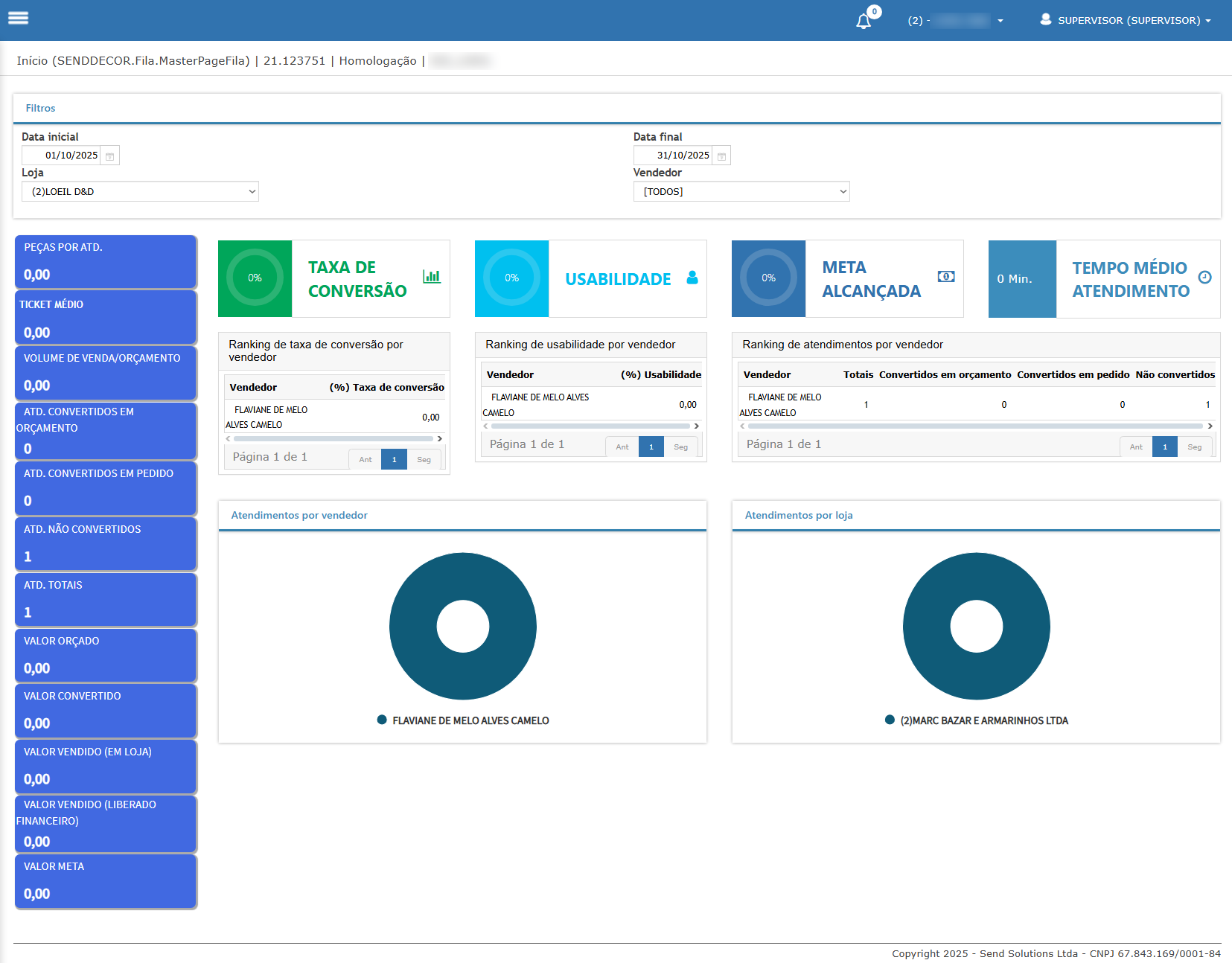 Neste cenário iremos acessar o dashboard e validar que não exiba atendimentos cancelados.