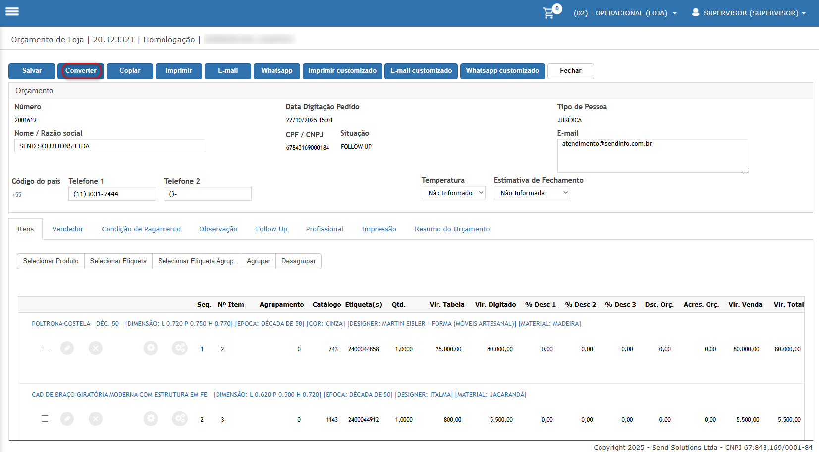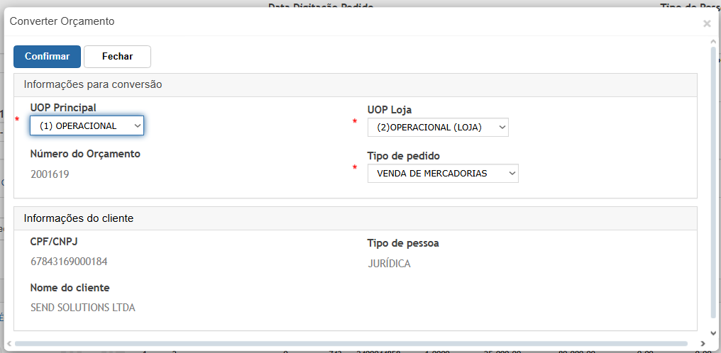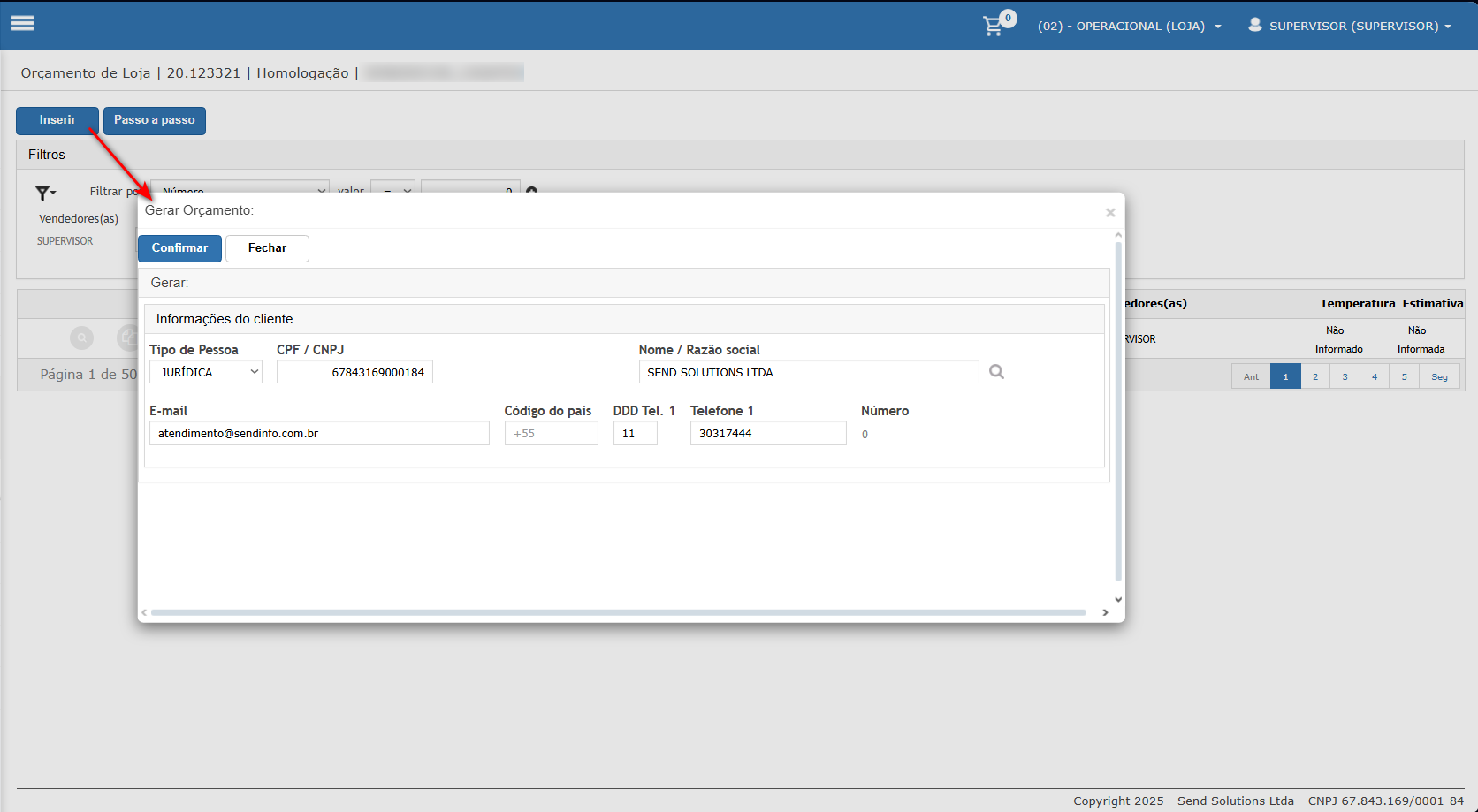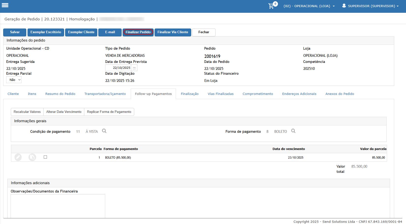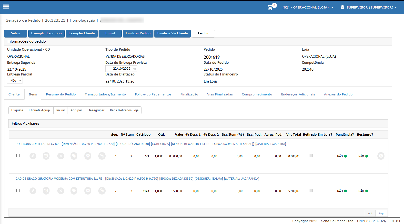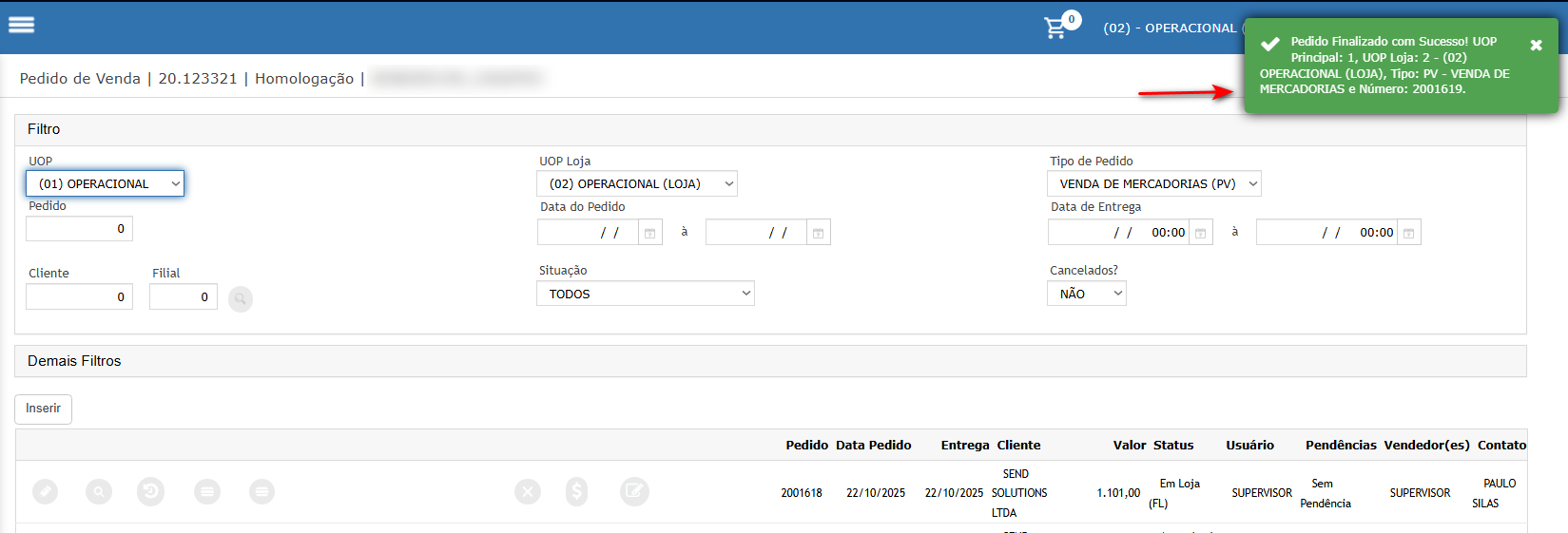 Neste cenário iremos gerar um orçamento e pedido e finalizar e aprovar, assim o mesmo não deve possibilitar