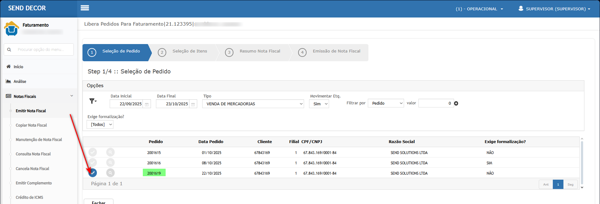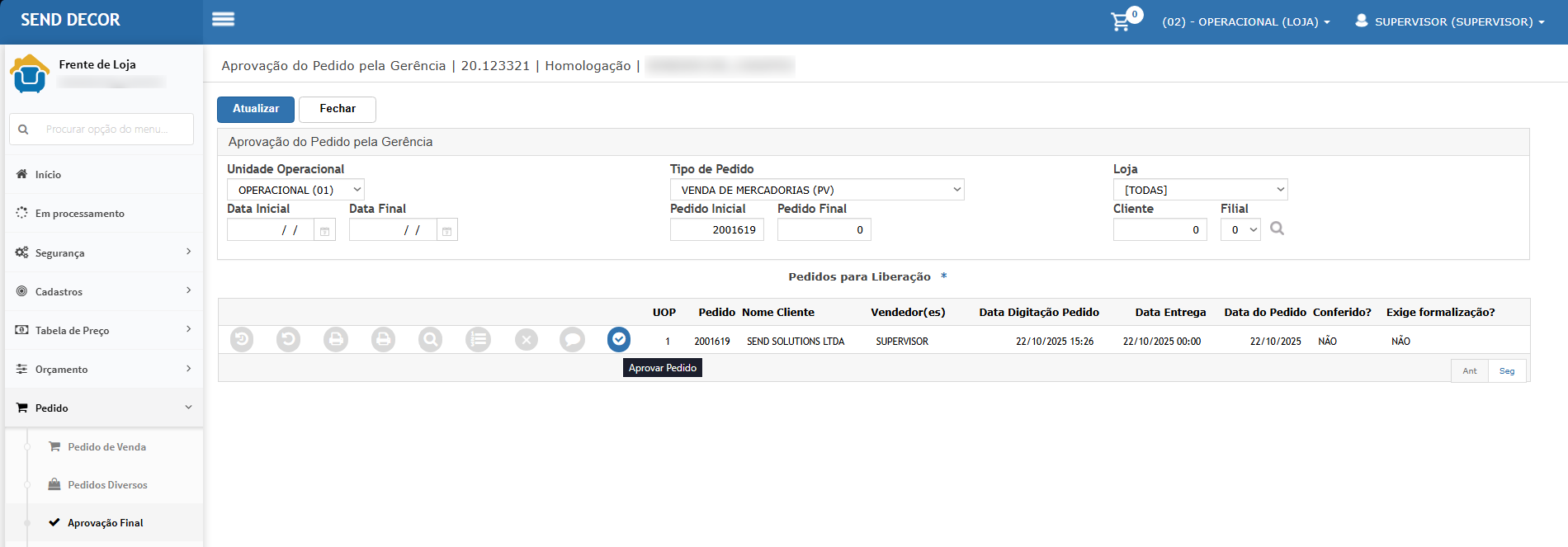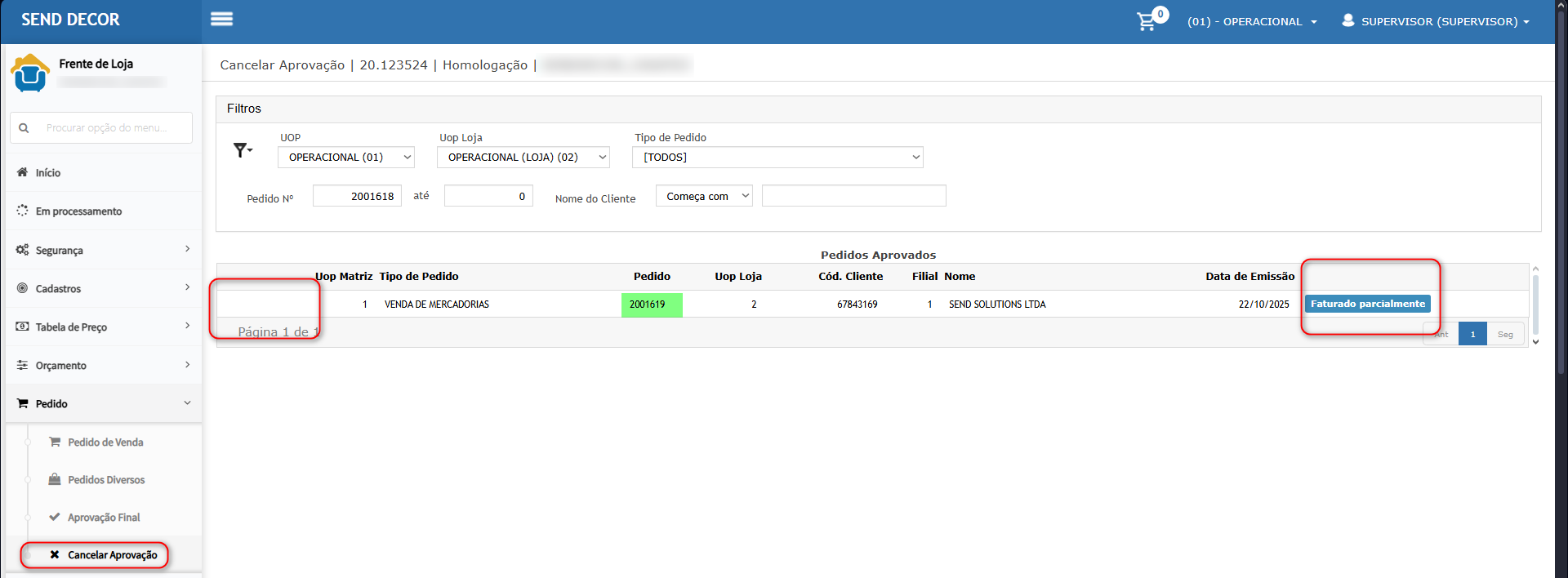OS 80993 - CORREÇÃO - SIS/WEB - SENDDECOR - CANCELAR APROVAÇÃO DE PEDIDO FATURADO