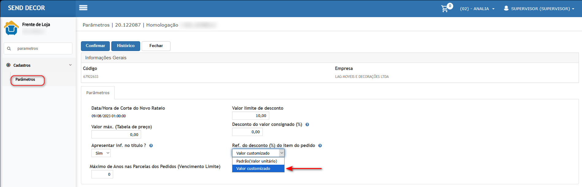 OS 80997 - MELHORIA - SIS/WEB - SENDDECOR - PERCENTUAL DE DESCONTO ITEM NO BALANÇO DE VENDAS
