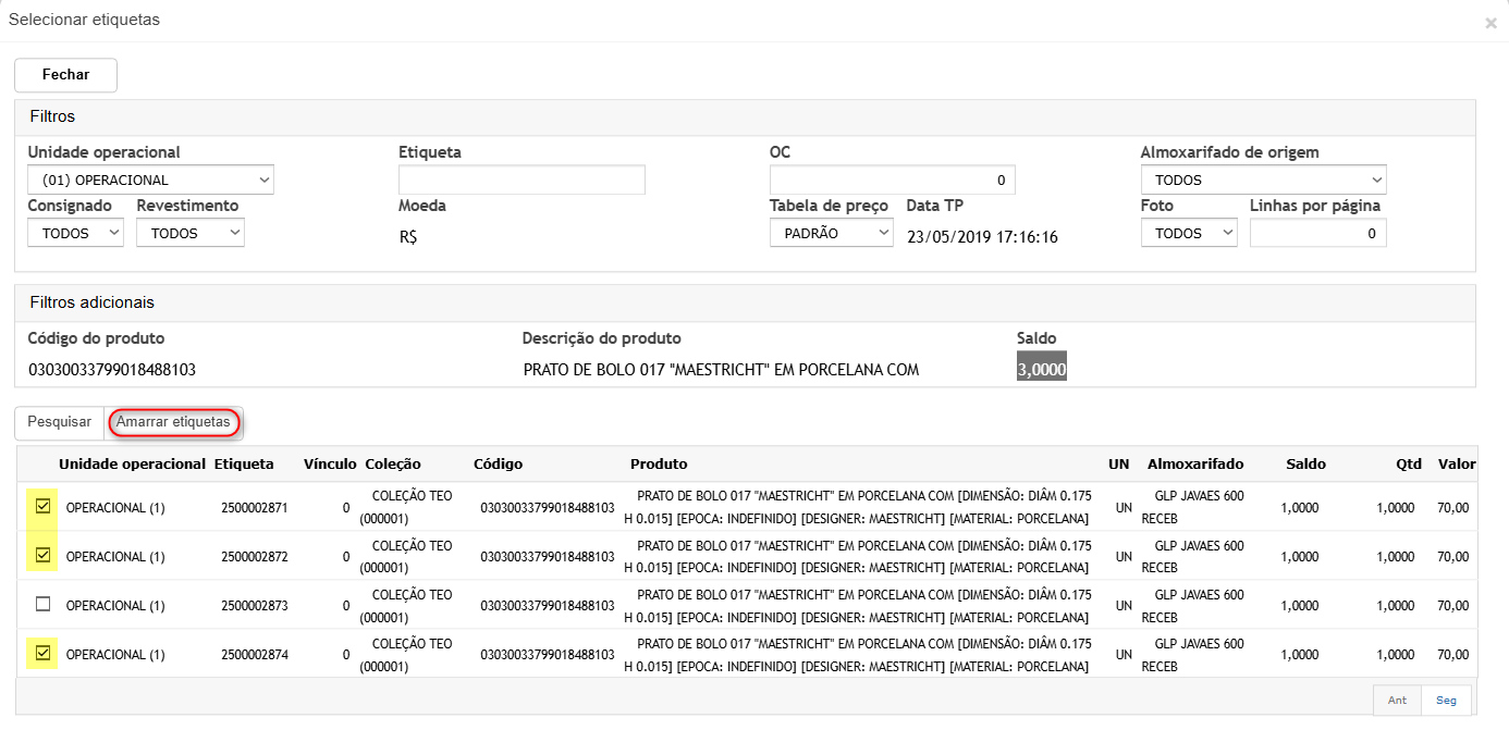 Neste cenário iremos amarrar mais de uma etiqueta ao pedido, facilitando a seleção quando possuir grandes quantidades.