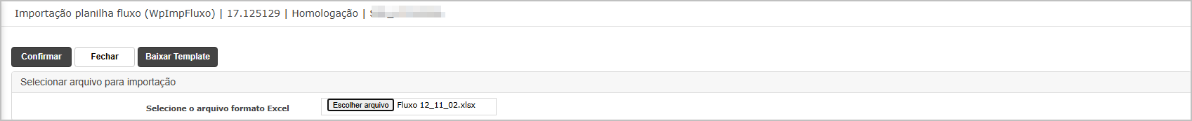 Ao abrir a tela, selecione a planilha preenchida e clique em Confirmar.