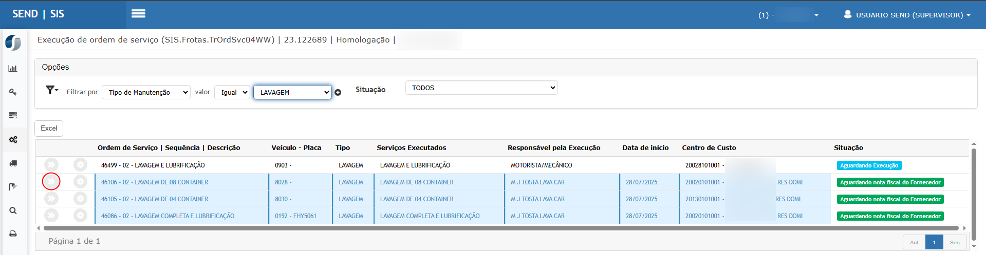 Cenário 01 – Filtrar OS por Tipo de Manutenção = LAVAGEM