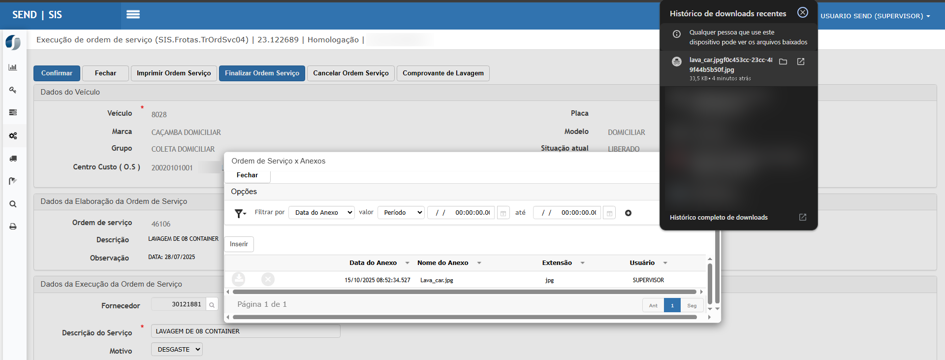 O usuário reporta que "Nas ordens de serviço do tipo lavagem e lubrificação, depois de finalizadas, não é possível visualizar os anexos (comprovante de lavagem)".