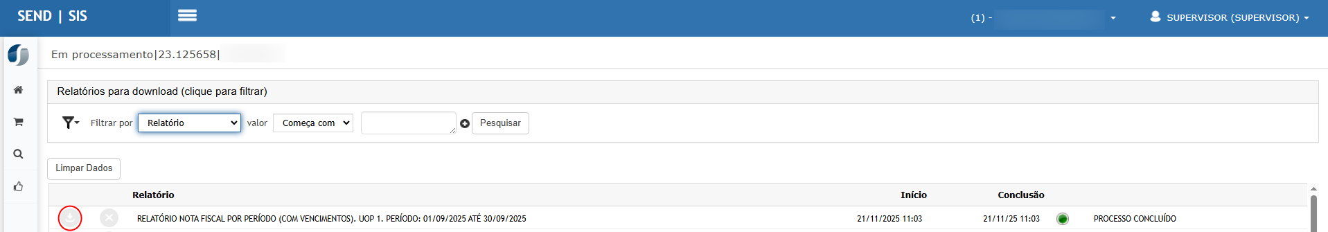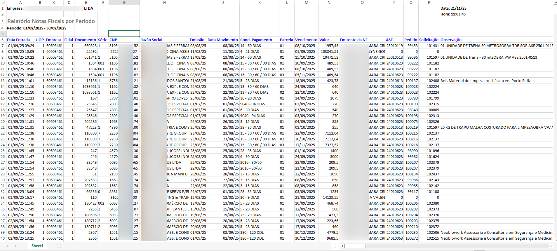 OS 81135 - MELHORIA - RECEBIMENTO - RELATORIO - NOTAS FISCAIS - POR PERIODO