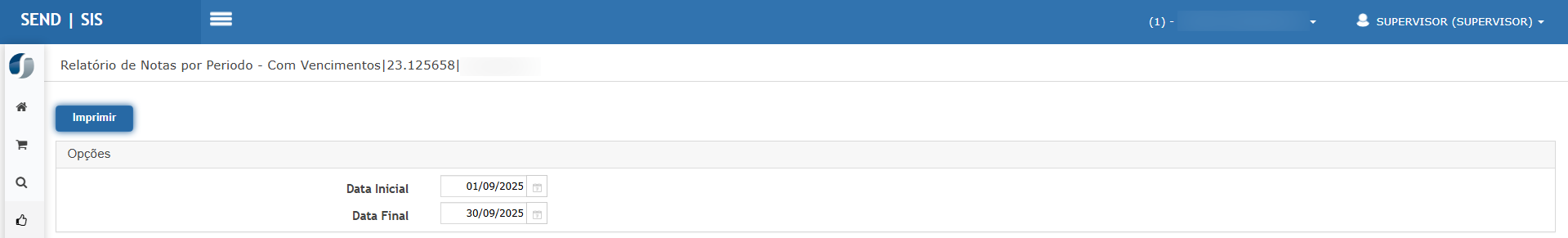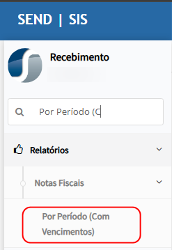 Acessar Recebimento > Relatórios > Notas Fiscais > Por Período (Com Vencimentos).