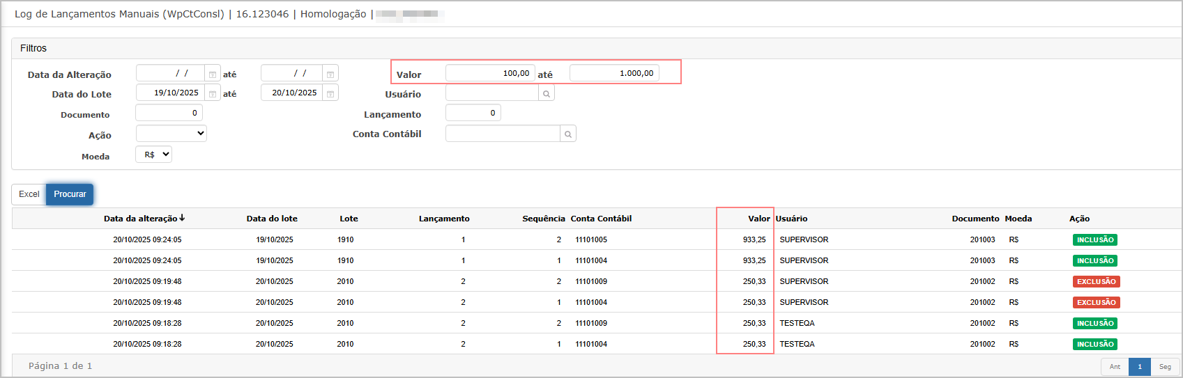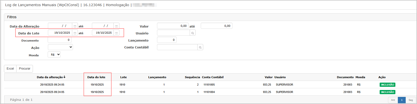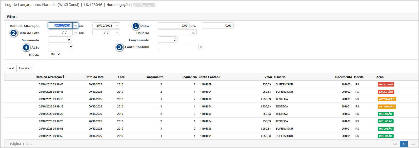 Esta solicitação tem por objetivo, aprimorar a tela de Consulta de Log de Lançamentos (Contabilidade > Consultas > Consulta log lançamentos) incluindo novos filtros de pesquisa, permitindo maior precisão nas consultas e nas análises exportadas para Excel.