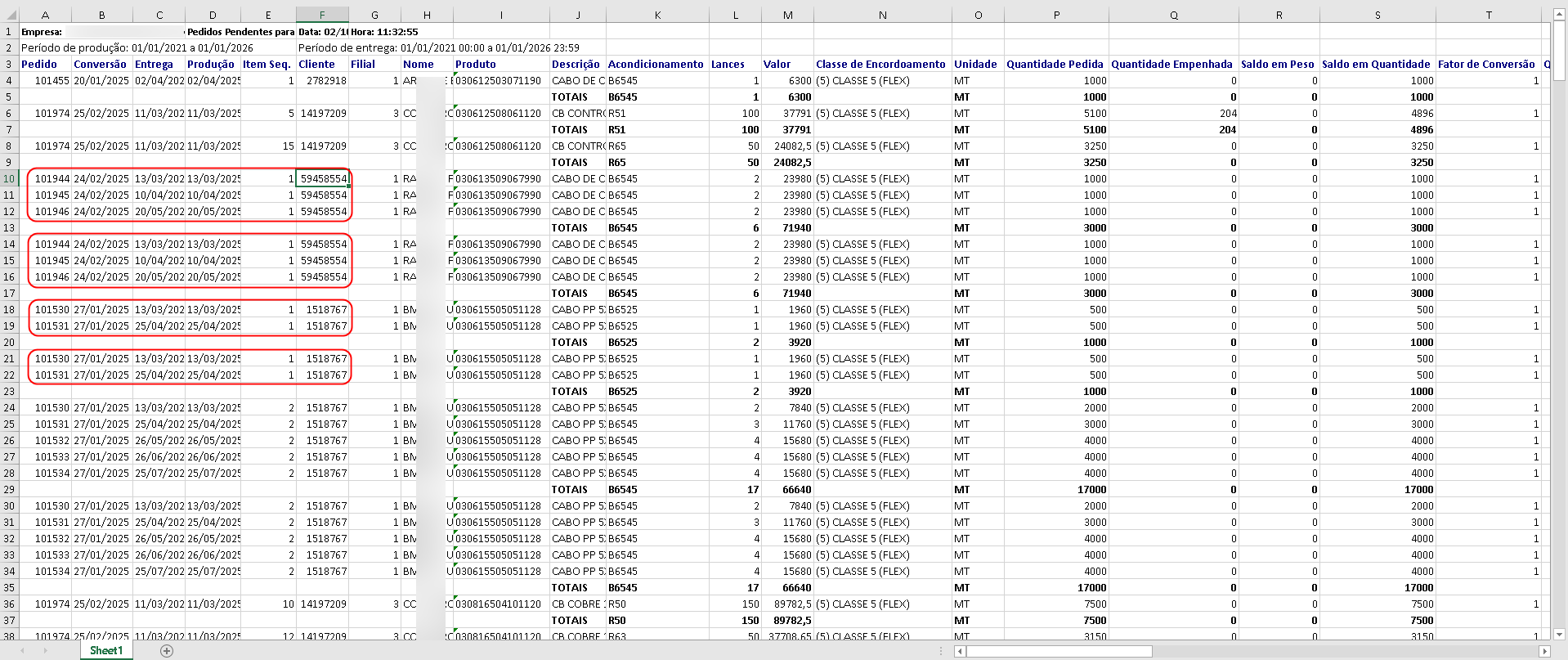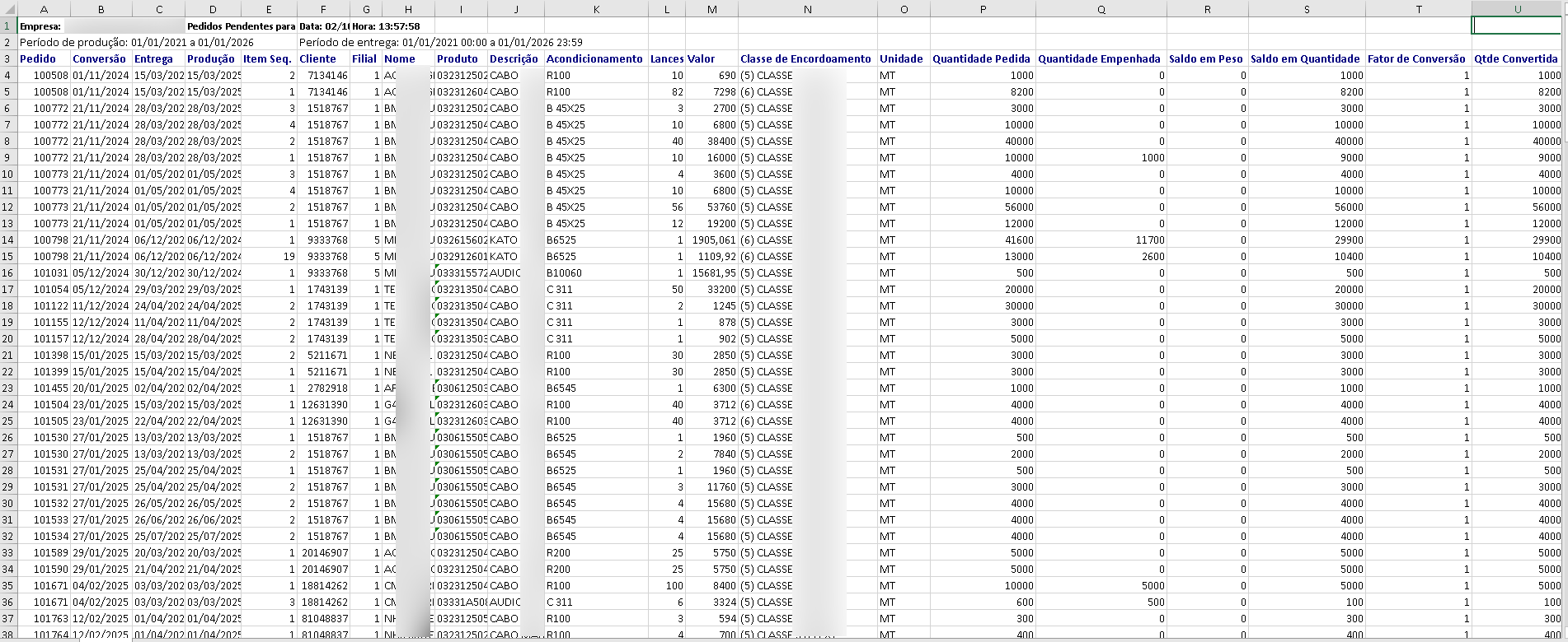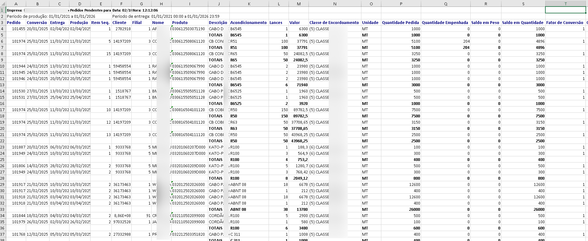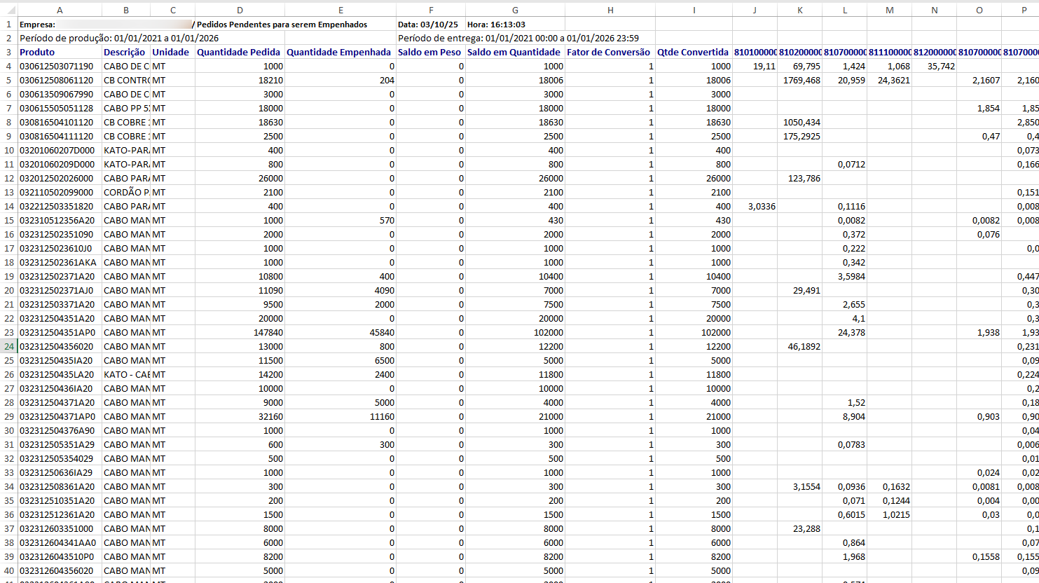 O usuário relatou que o relatório “Pedidos com Itens Pendentes a Empenhar”, disponível no módulo Logística > Relatórios, estava apresentando um problema grave. Ao gerar o relatório, algumas linhas estão sendo duplicadas, fazendo com que os itens sejam listados mais de uma vez. Esse comportamento incorreto causa impacto direto na produção, pois os itens duplicados são enviados duas vezes para fabricação, gerando retrabalho e risco de excesso de produção. A expectativa do usuário é que o relatório apresente cada item apenas uma vez, tanto na ordenação por Pedido quanto por Produto, exibindo corretamente a quantidade de lances e o valor total de cada item, sem repetições.