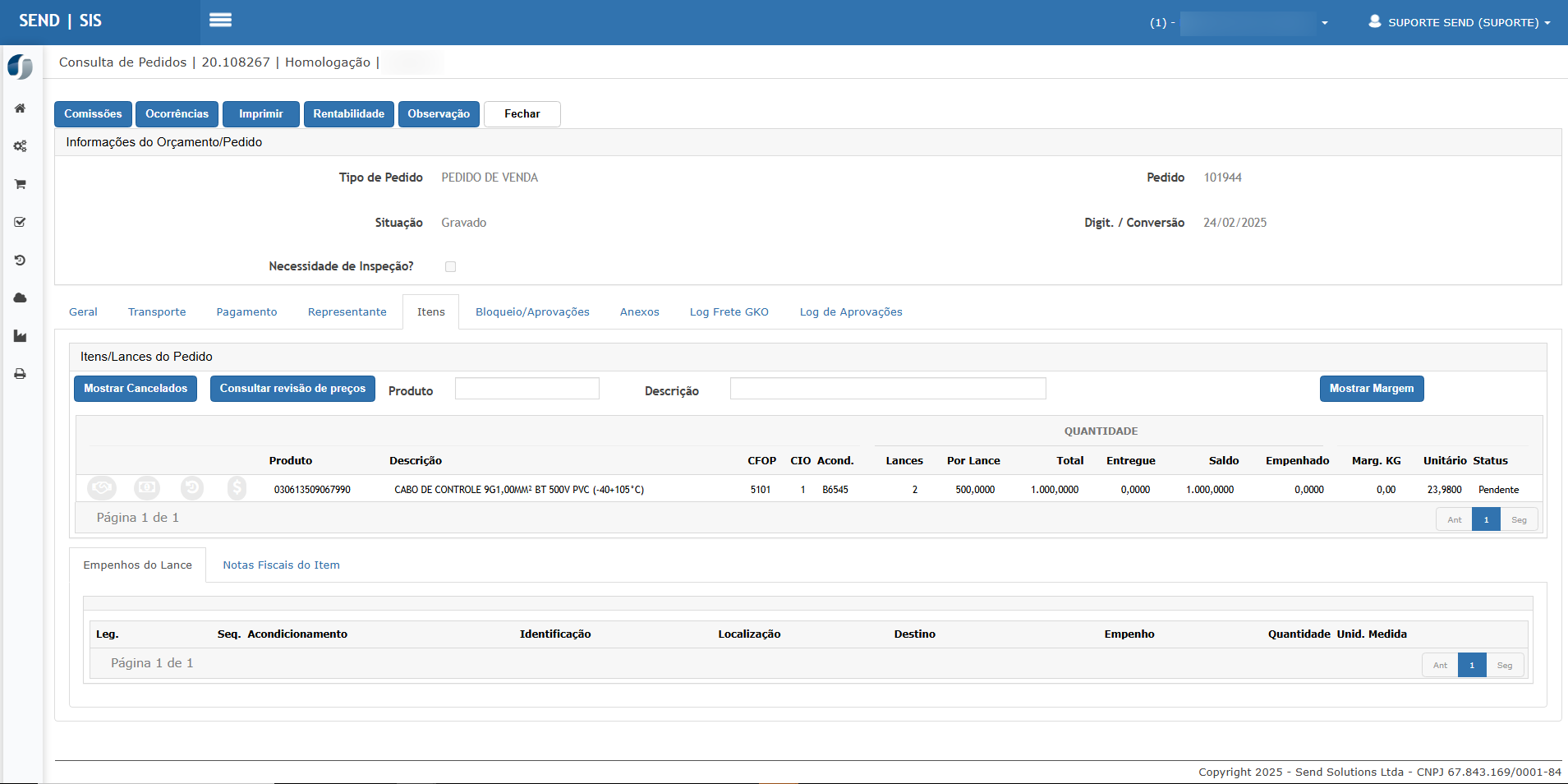 Ir na aba Itens e localizar o item desejado (Ex.: 030613509067990).