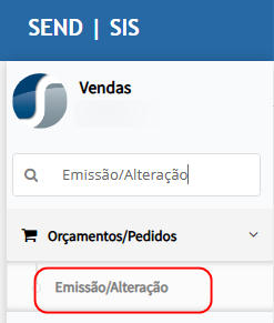Acessar Vendas > Orçamentos/Pedidos > Emissão/Alteração.