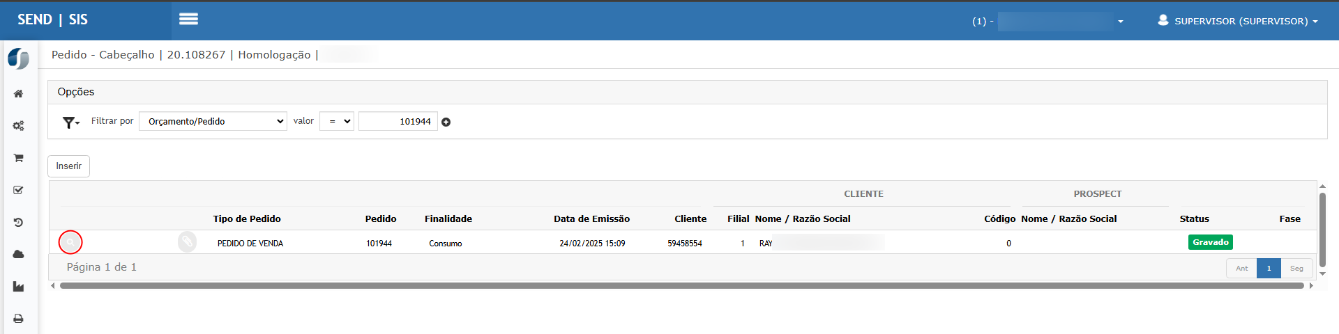 Filtrar por Pedido desejado (ex.: 101944) e abrir a consulta.