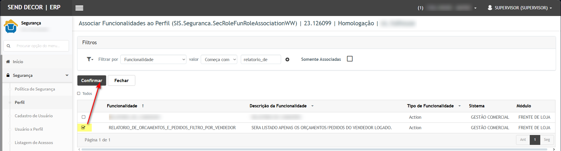- Necessário conceder acesso aos perfis de usuários responsáveis na funcionalidade "RELATORIO_DE_ORCAMENTOS_E_PEDIDOS_FILTRO_POR_VENDEDOR".