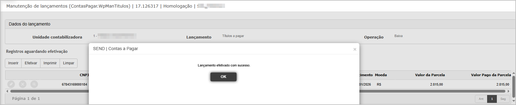 Verifiquei os dados da baixa e finalize o lançamento de baixa.
