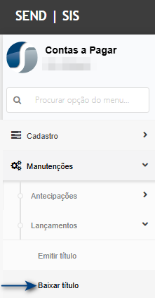 Acessar Contas a Pagar > Lançamentos > Baixa de Títulos