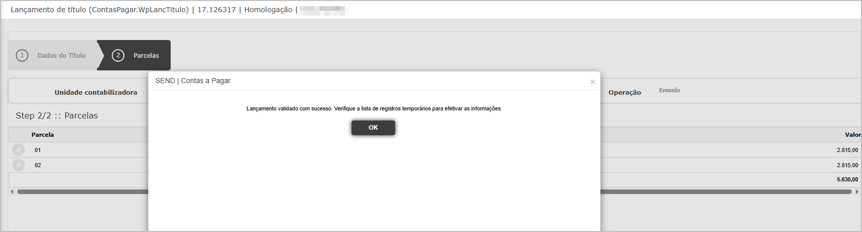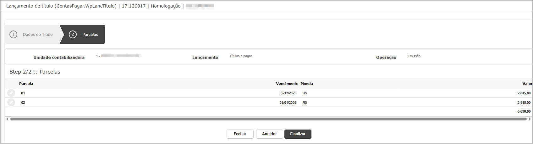 Verifiquei os dados das parcelas e finalize o lançamento do título.
