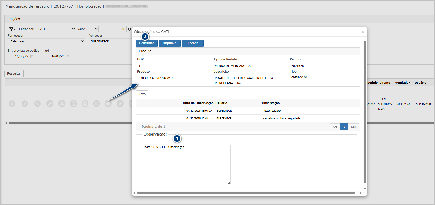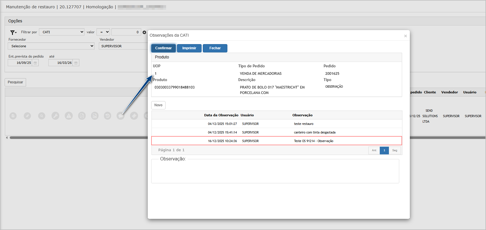 - Abrir a CATI com observação e validar que o texto/observação está visível.