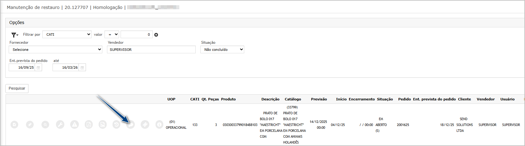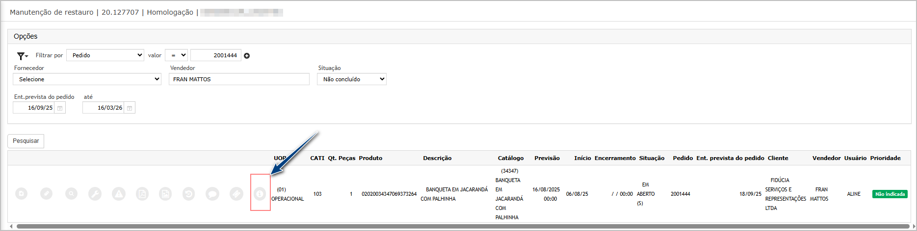 Na tela de manutenção de reparo deve exibir o novo botão de detalhes do pedido.