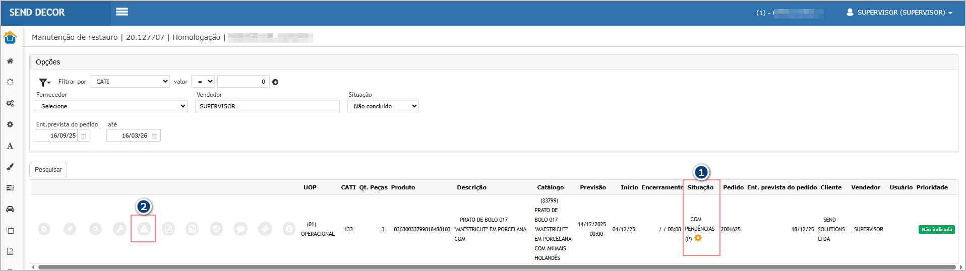 Na tela principal, encontre a CATI e clique no botão pendência (2).