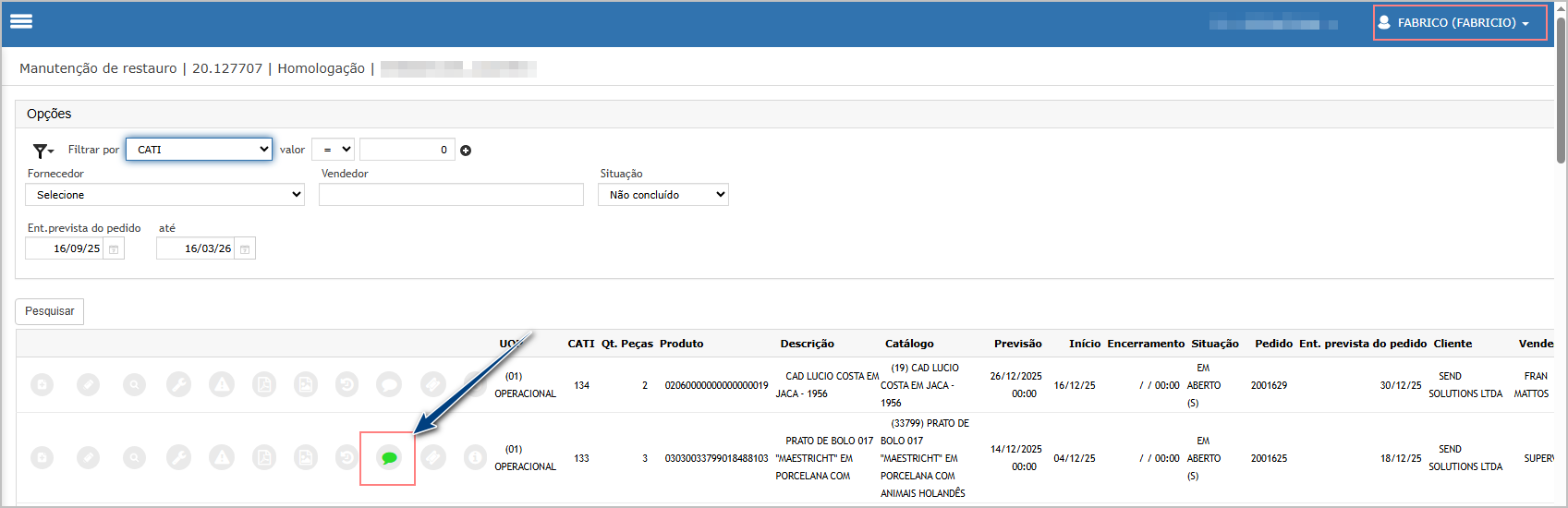 Cenário 2: Pendências da CATI: permitir execução por Técnico/Restaurador e Vendedor (regra ajustada)
