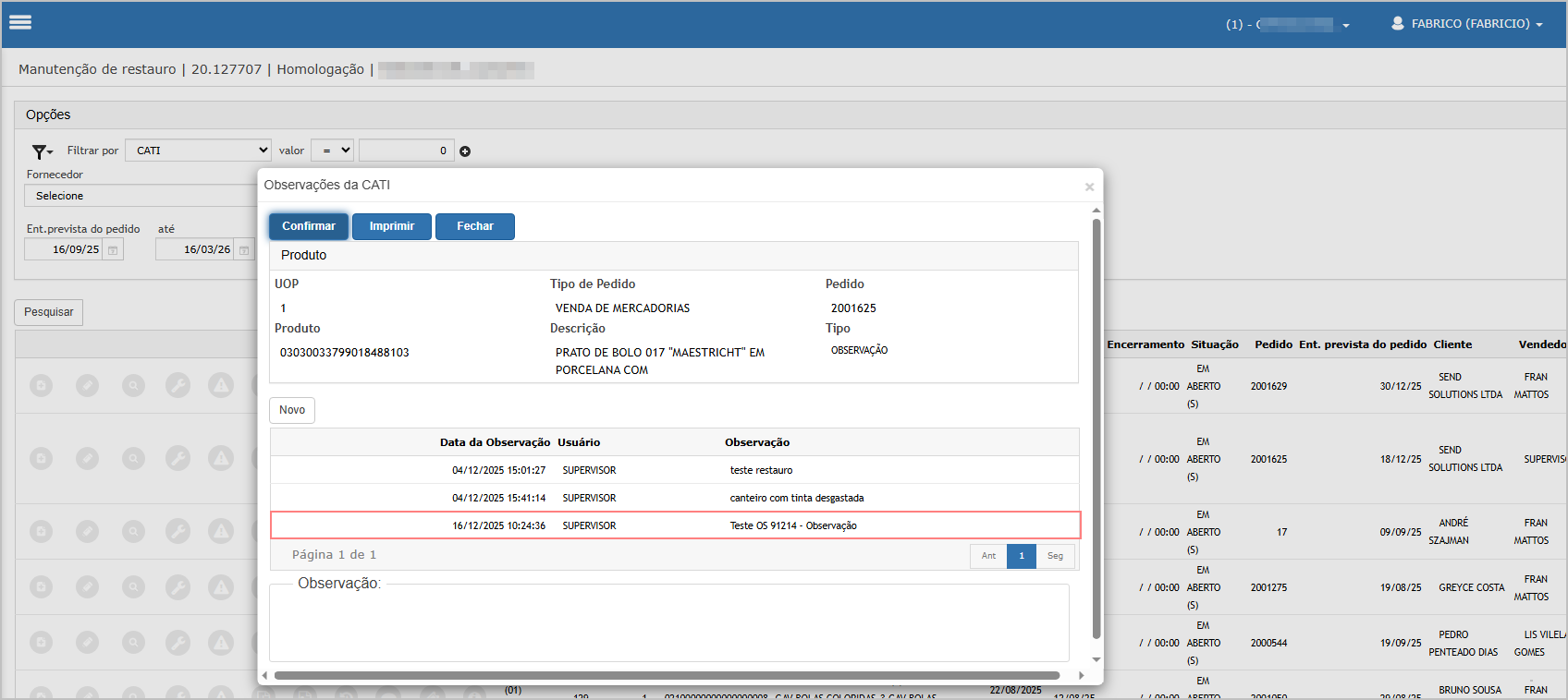 - Abrir a CATI com observação e validar que o texto/observação está visível.