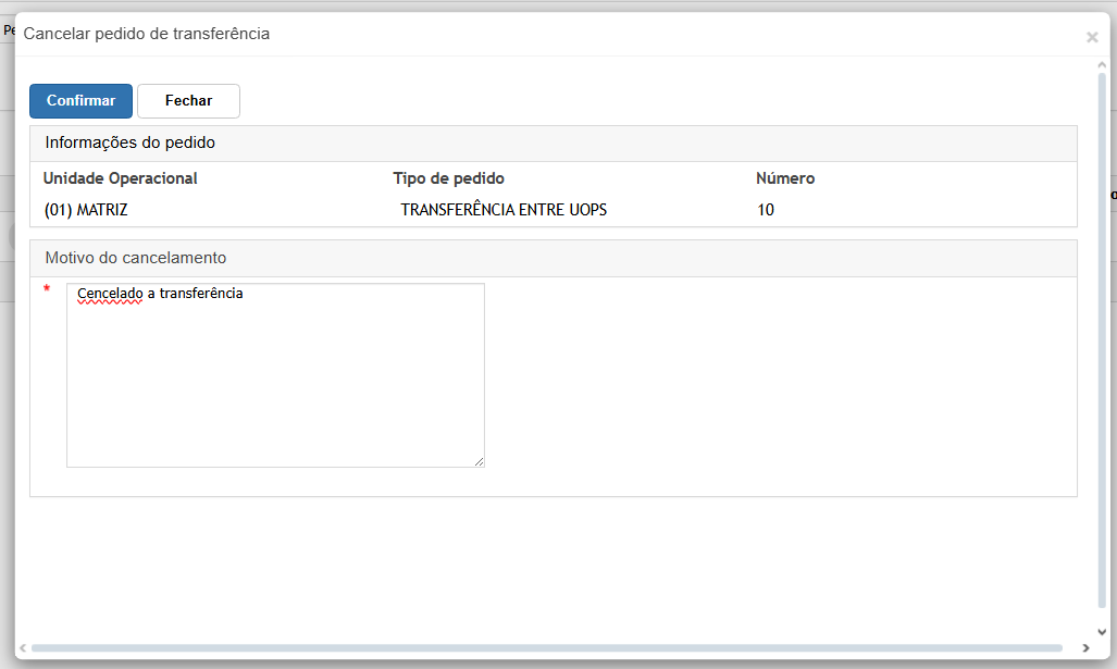 - Esta solicitação tem por objetivo possibilitar voltar ou cancelar o processo de transferência entre unidades, se o mesmo não tiver faturado.